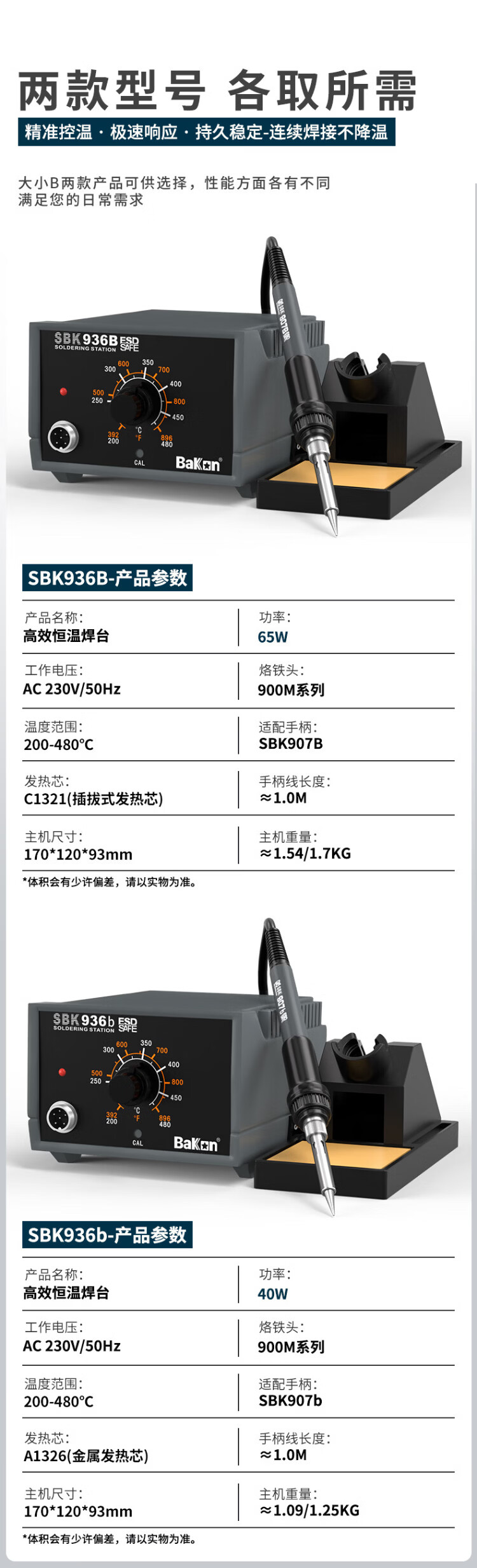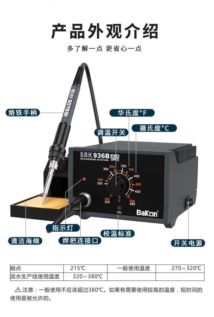 Bakon white light 936 electric soldering iron set 65W adjustable temperature constant temperature soldering iron household soldering station SBK936b 40W