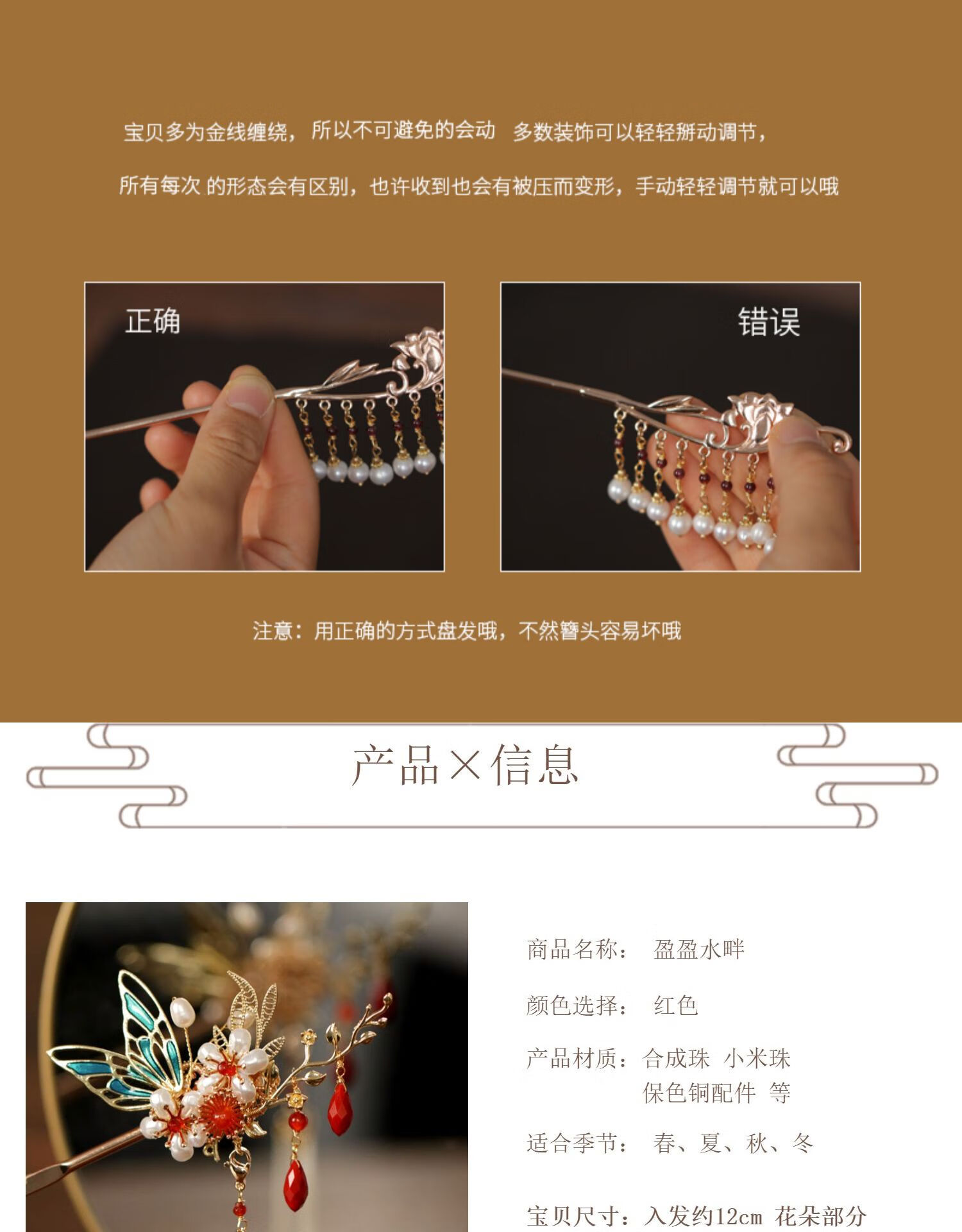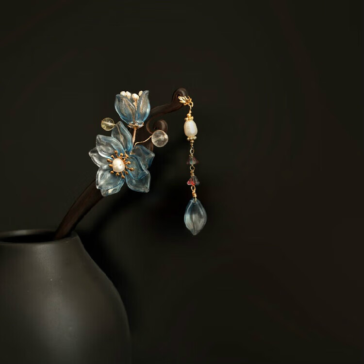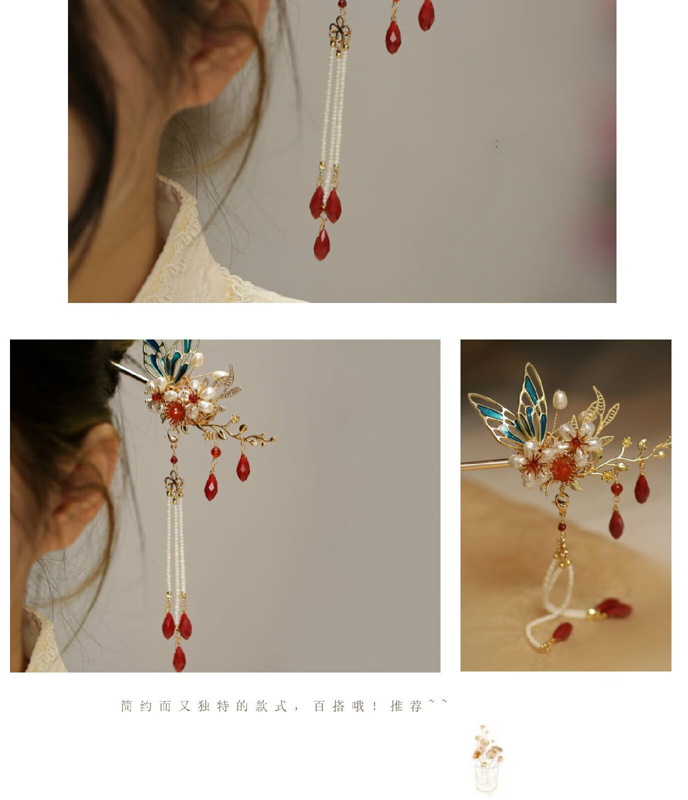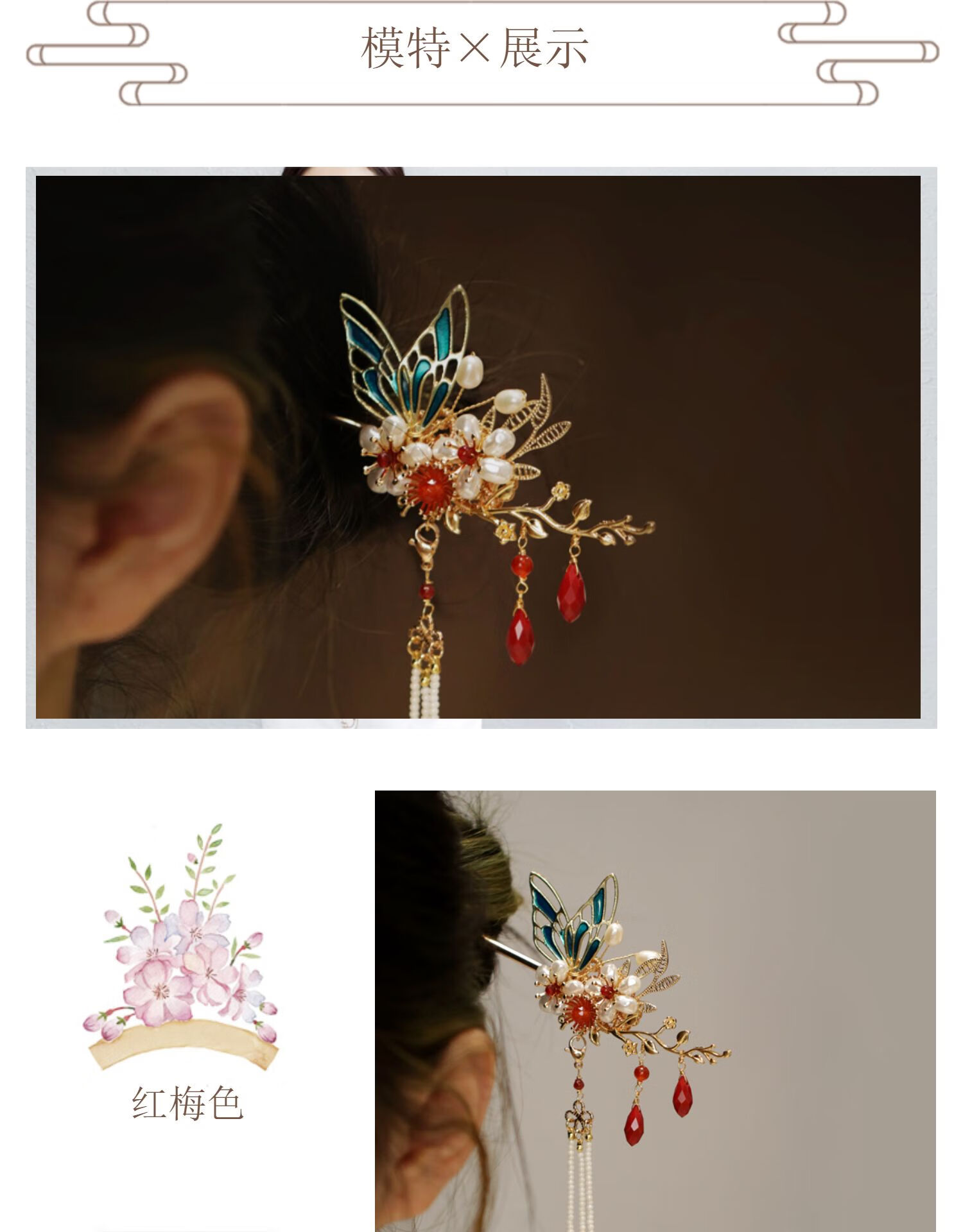 Glaze flower hairpin, simple, modern, everyday, round head, classical cheongsam accessories, antique fringed hair accessories, red plum hairpin