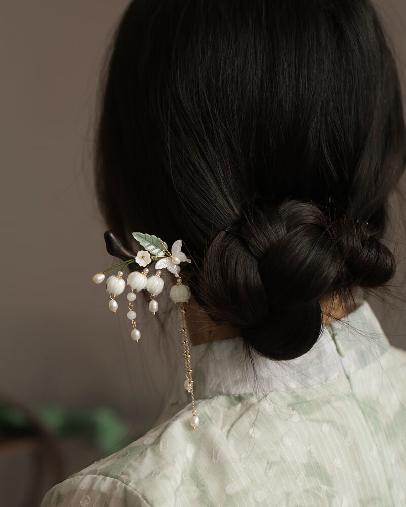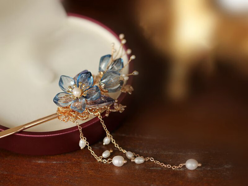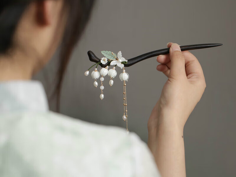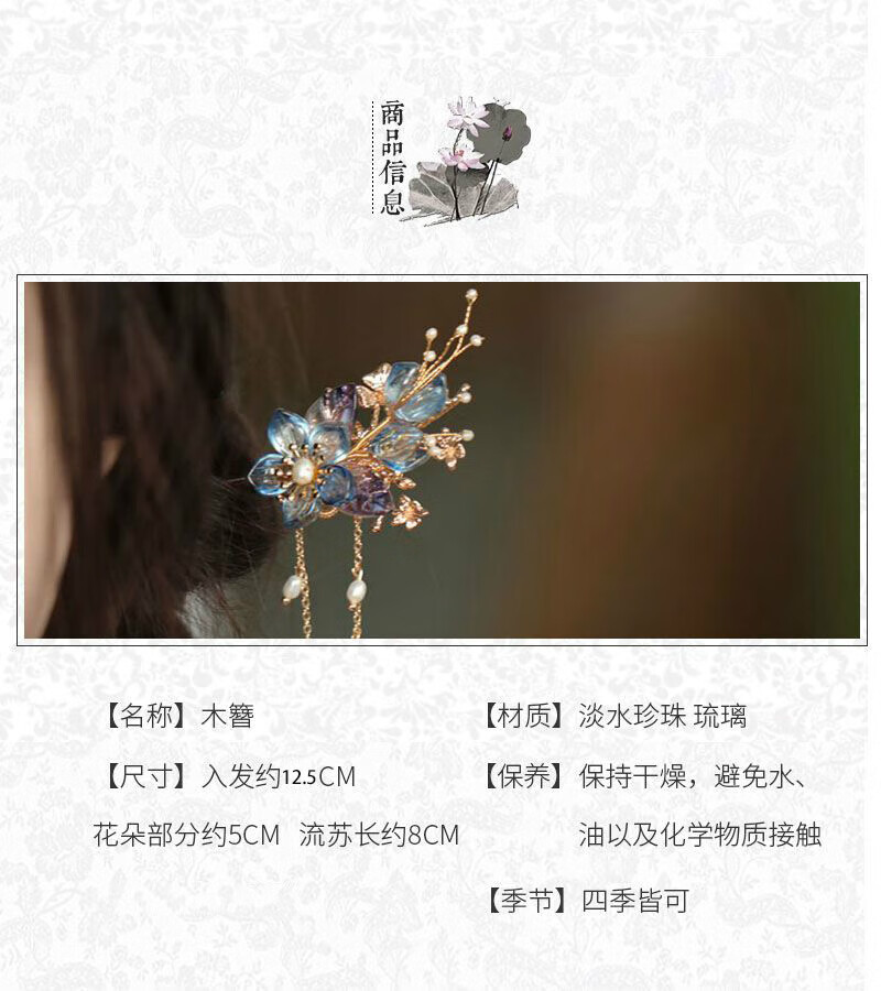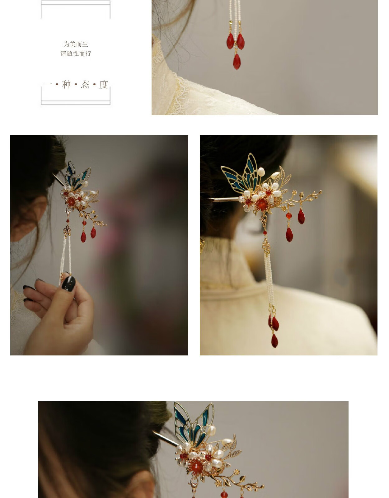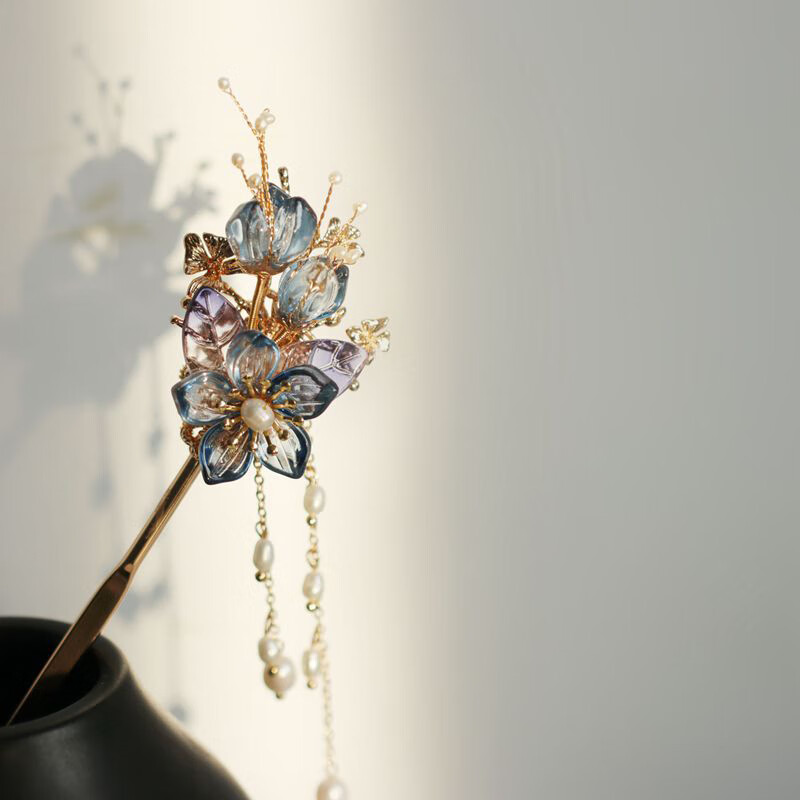 Glaze flower hairpin, simple, modern, everyday, round head, classical cheongsam accessories, antique fringed hair accessories, red plum hairpin