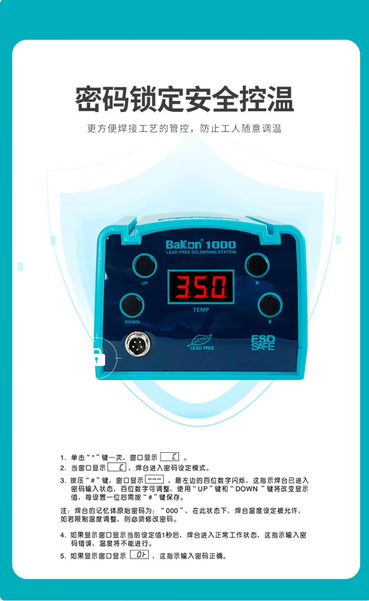 Bakon white light high frequency constant temperature soldering station 90W digital display lead-free temperature control temperature adjustment soldering iron BK1000 standard configuration