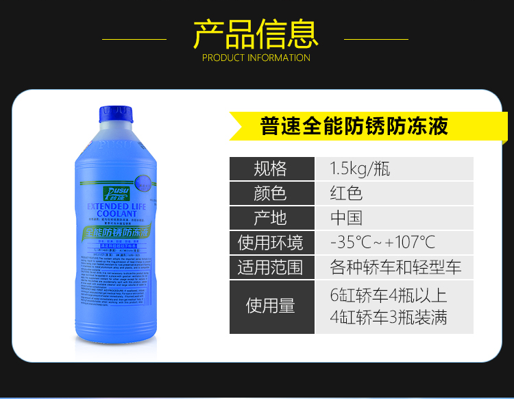 PUSU3495 automobile and motorcycle anti-rust and antifreeze water tank coolant-35 blue 1.5kg universal