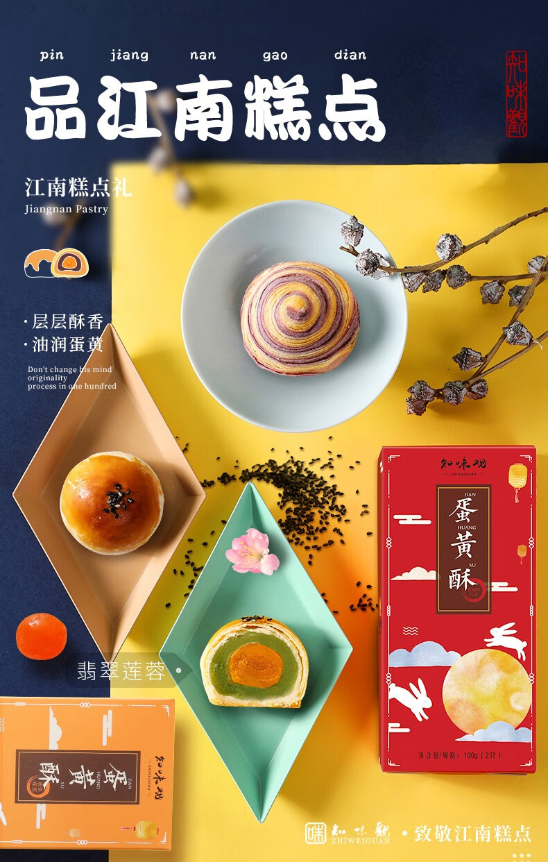 Zhiweiguan, a time-honored Chinese brand, multi-flavored egg yolk cakes, handmade mochi pastries, snacks and afternoon tea