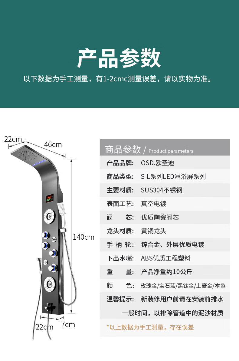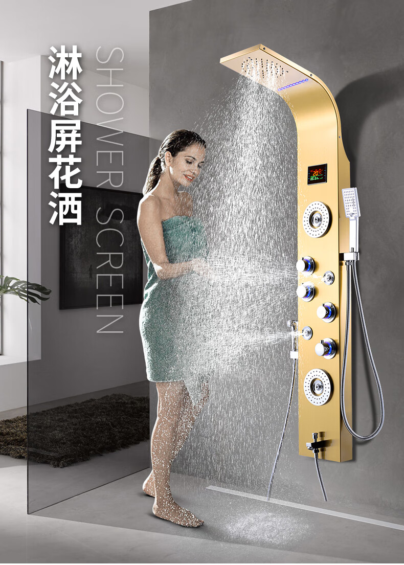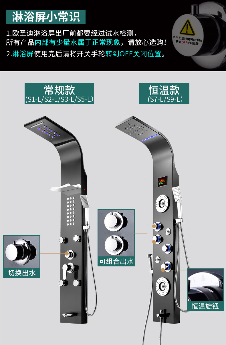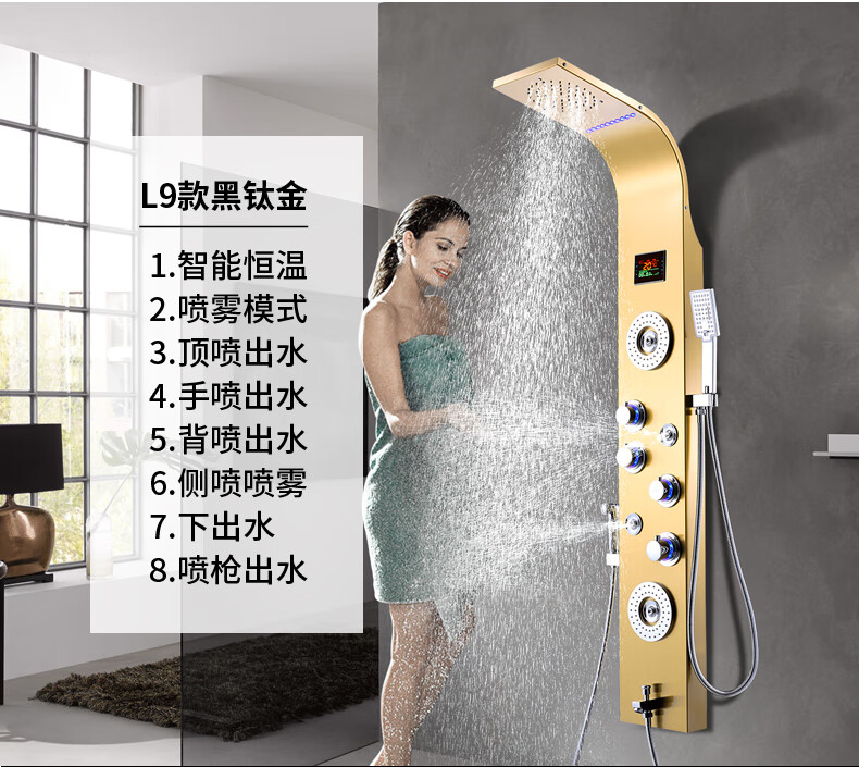 OSD (OSD) stainless steel shower screen thermostatic shower set shower screen rain shower head wall-mounted shower faucet L1 original color hot and cold 3 functions