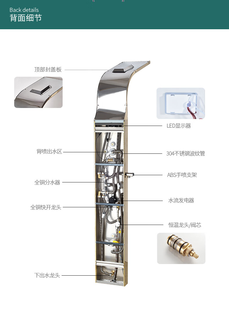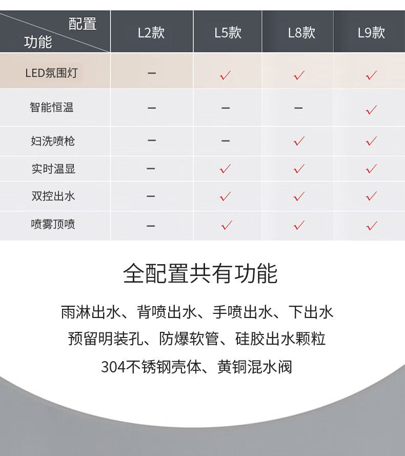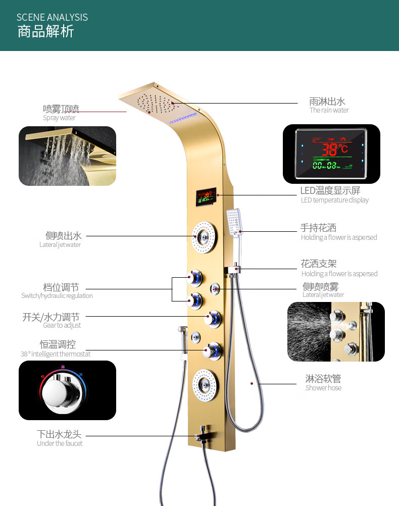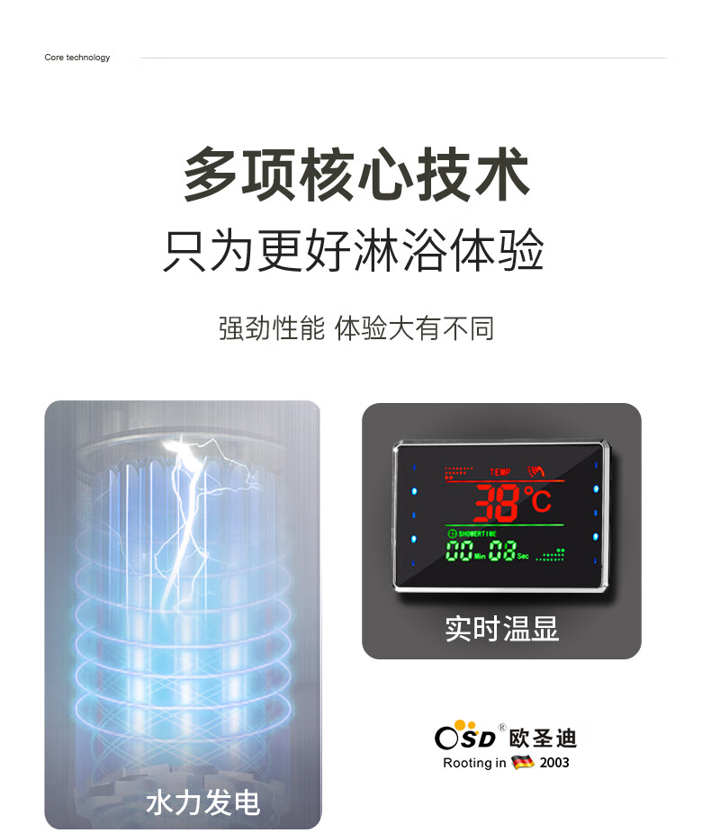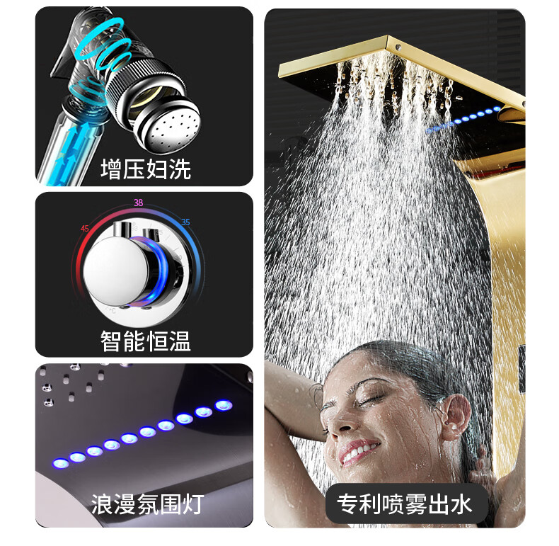 OSD (OSD) stainless steel shower screen thermostatic shower set shower screen rain shower head wall-mounted shower faucet L1 original color hot and cold 3 functions