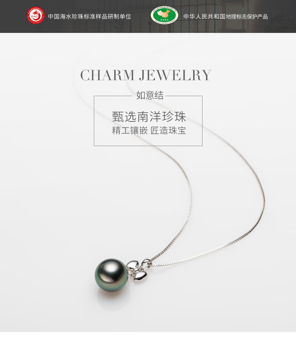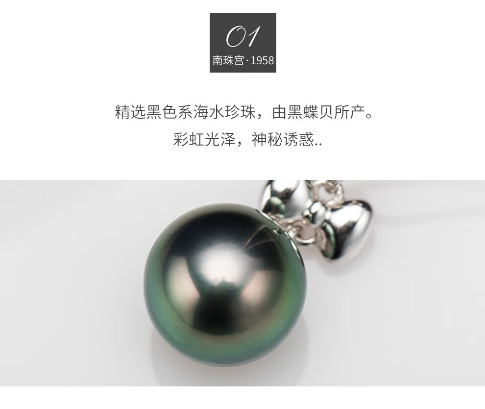 Nanzhu Palace Ruyi Knot Seawater Pearl Pendant Black Pearl Pendant 18K Gold Strong Light Lover Girlfriend Black Pearl 10-10.9mm