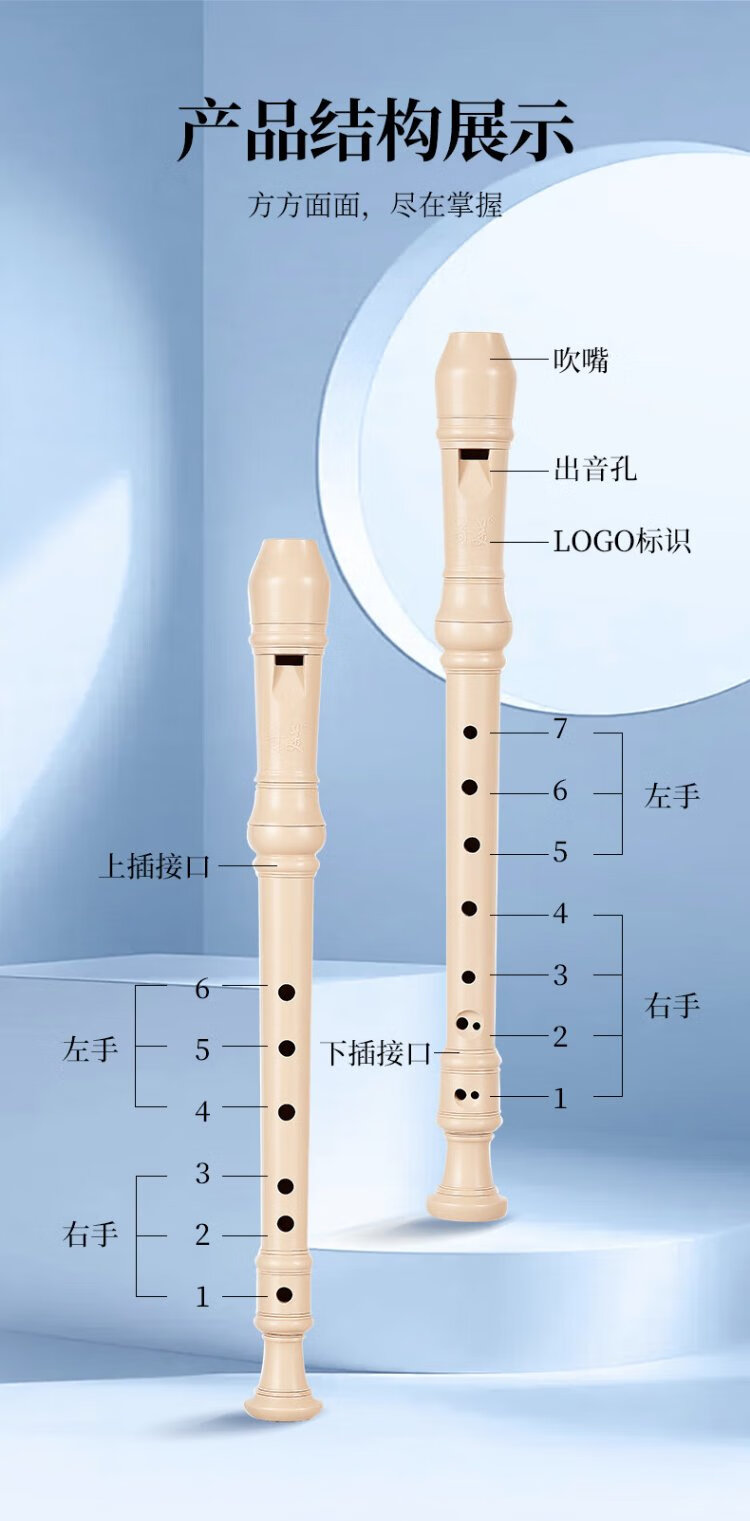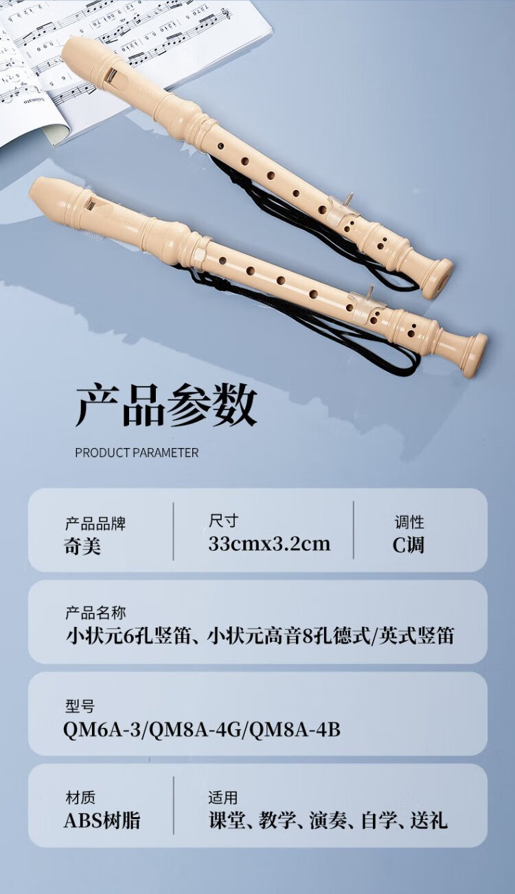 Chimei Xiaozhuangyuan 8-hole classroom instrument high-pitched German-style eight-hole recorder (canvas bag, with teaching materials)