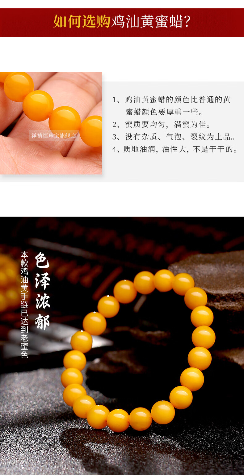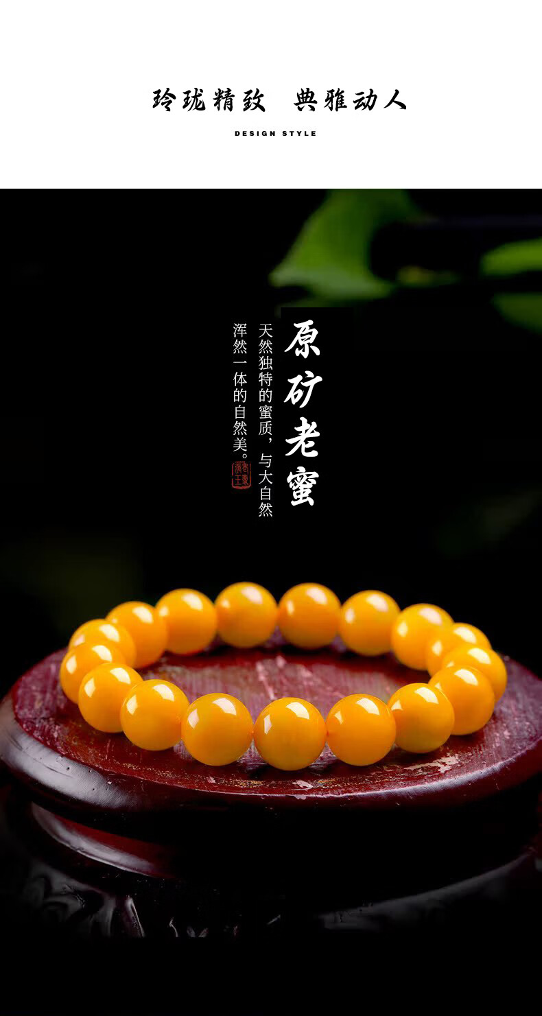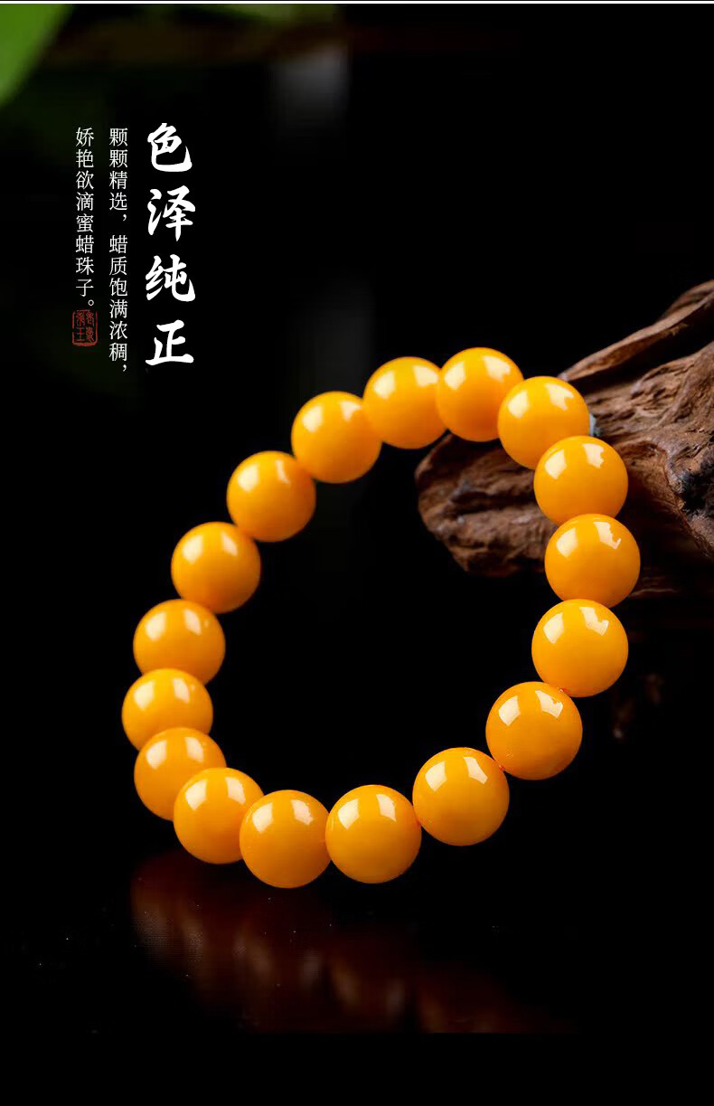 XIANGZHENFU JEWELRY Beeswax Bracelet Chicken Oil Old Beeswax Yellow Bracelet Ball Bead Chain Men and Women 10g 10-11mm Approx.