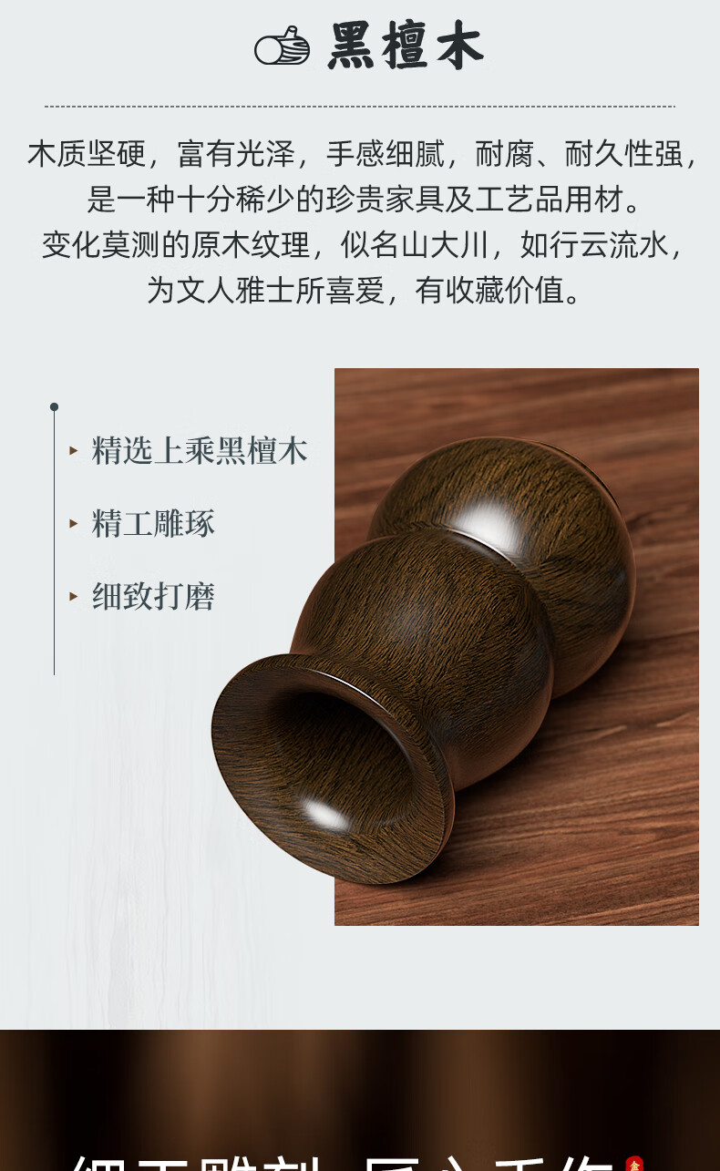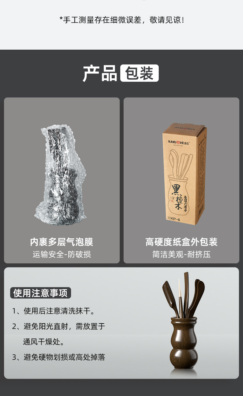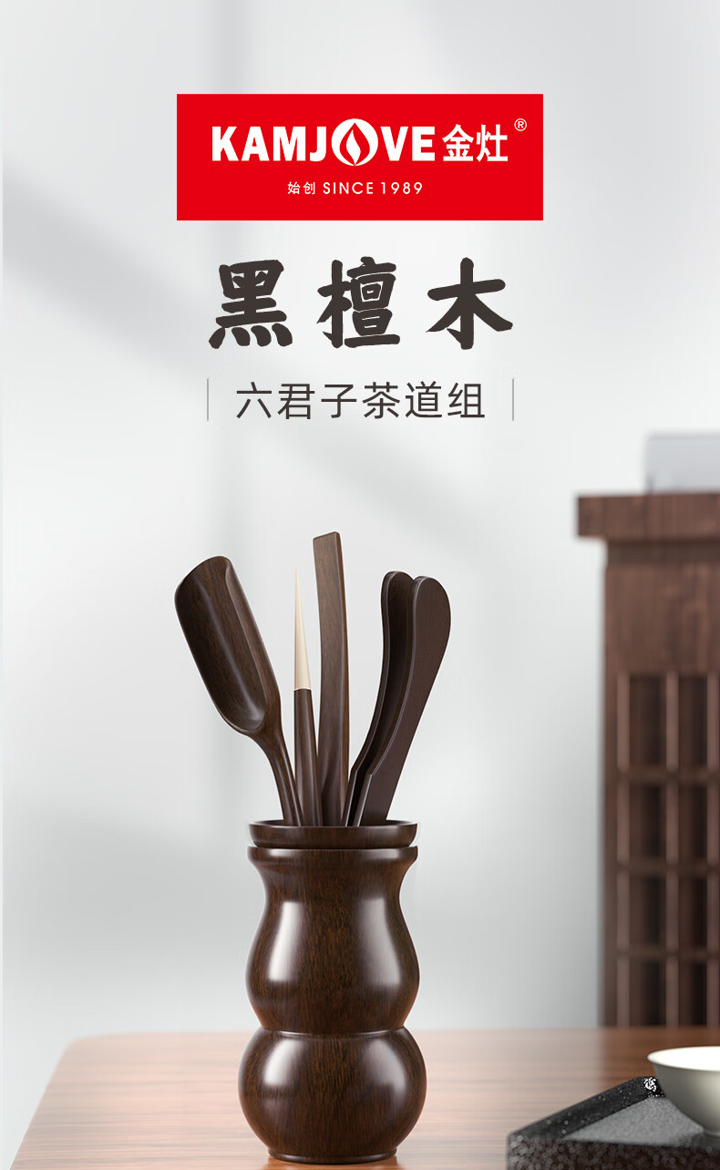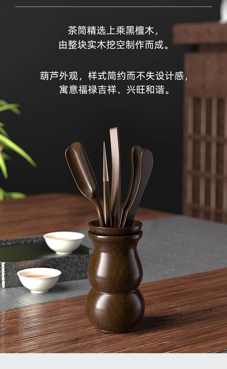 KAMJOVE Ebony Solid Wood Tea Ceremony Six Gentlemen Tea Clamp Cup Clamp Kung Fu Tea Set Accessories Set Solid Wood Carved KP-6