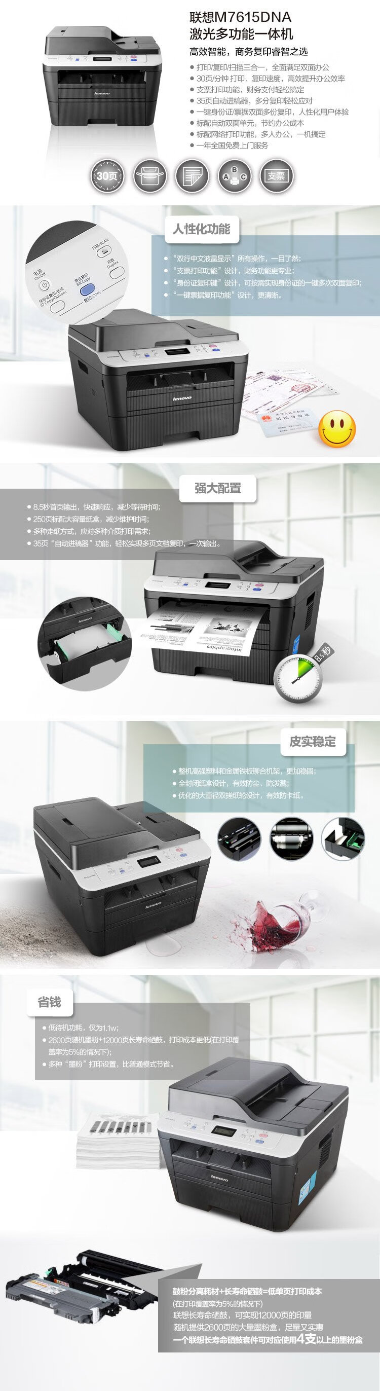 Lenovo M7615DNA automatic double-sided black and white laser printer all-in-one printing and copying machine wired network office home learning