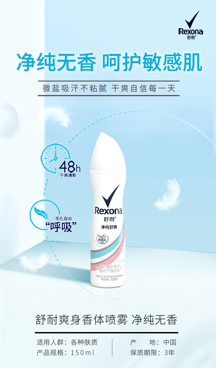 Shunai Women's Refreshing Body Spray, pure and unscented 150ml, dry and non-sticky (random packaging)
