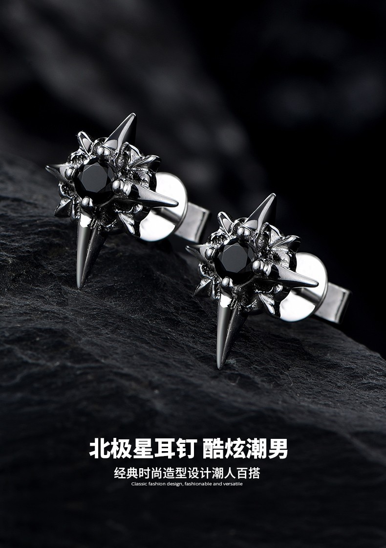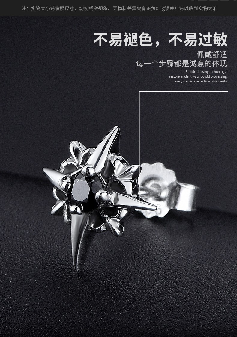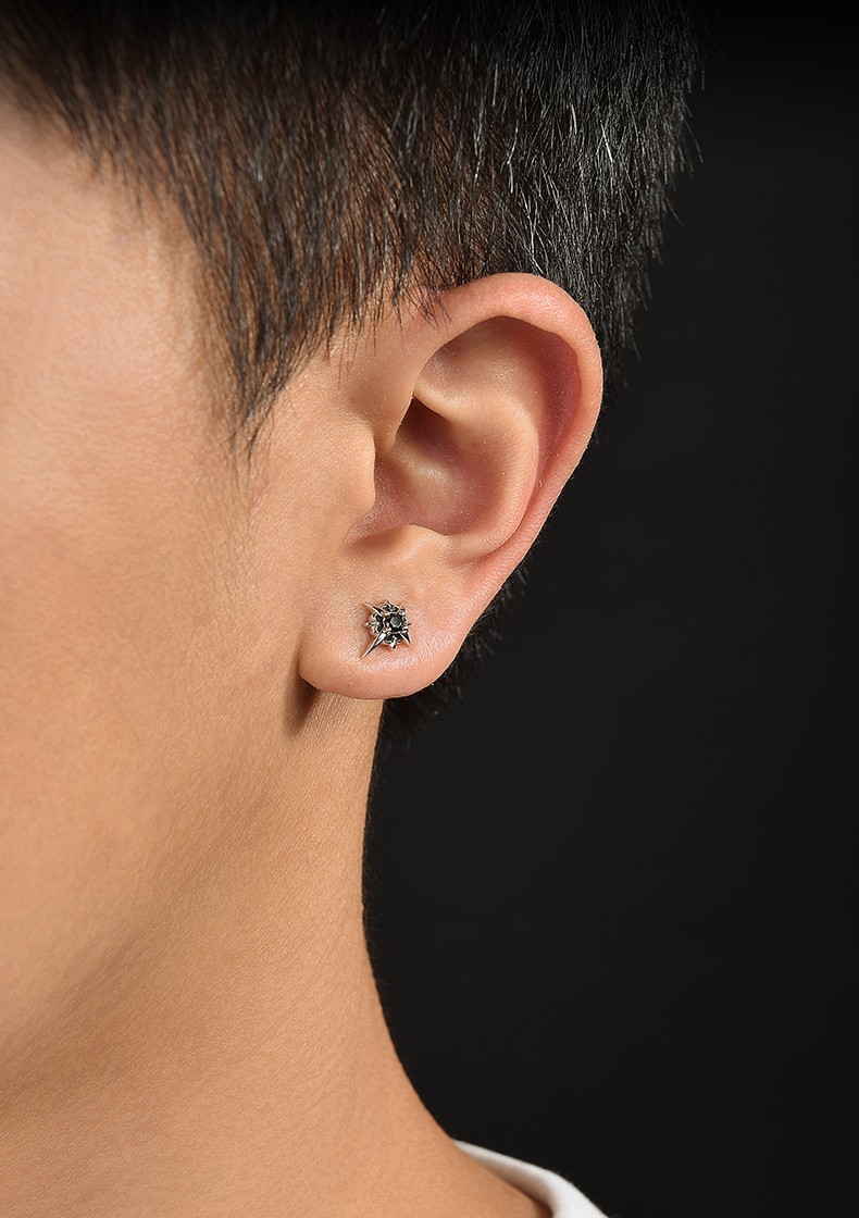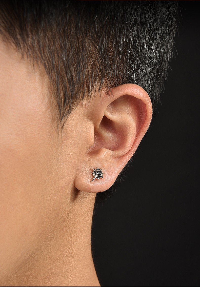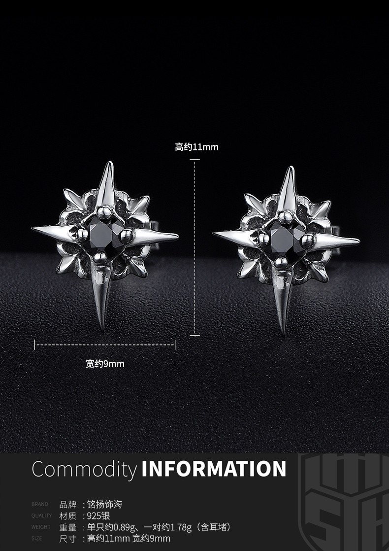 Mingyang Zhuhai 925 silver earrings for men, trendy Korean version of personalized men's earrings, single earring, fashion jewelry gift for boyfriend, single