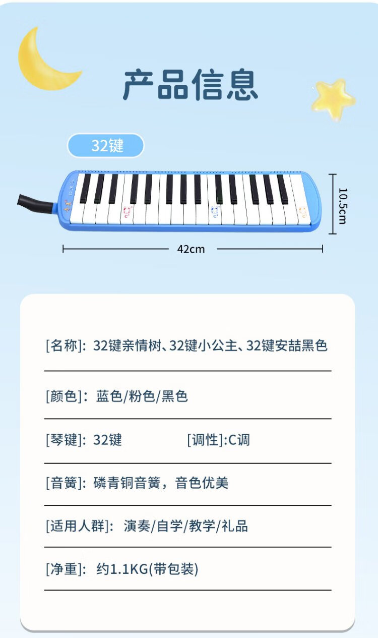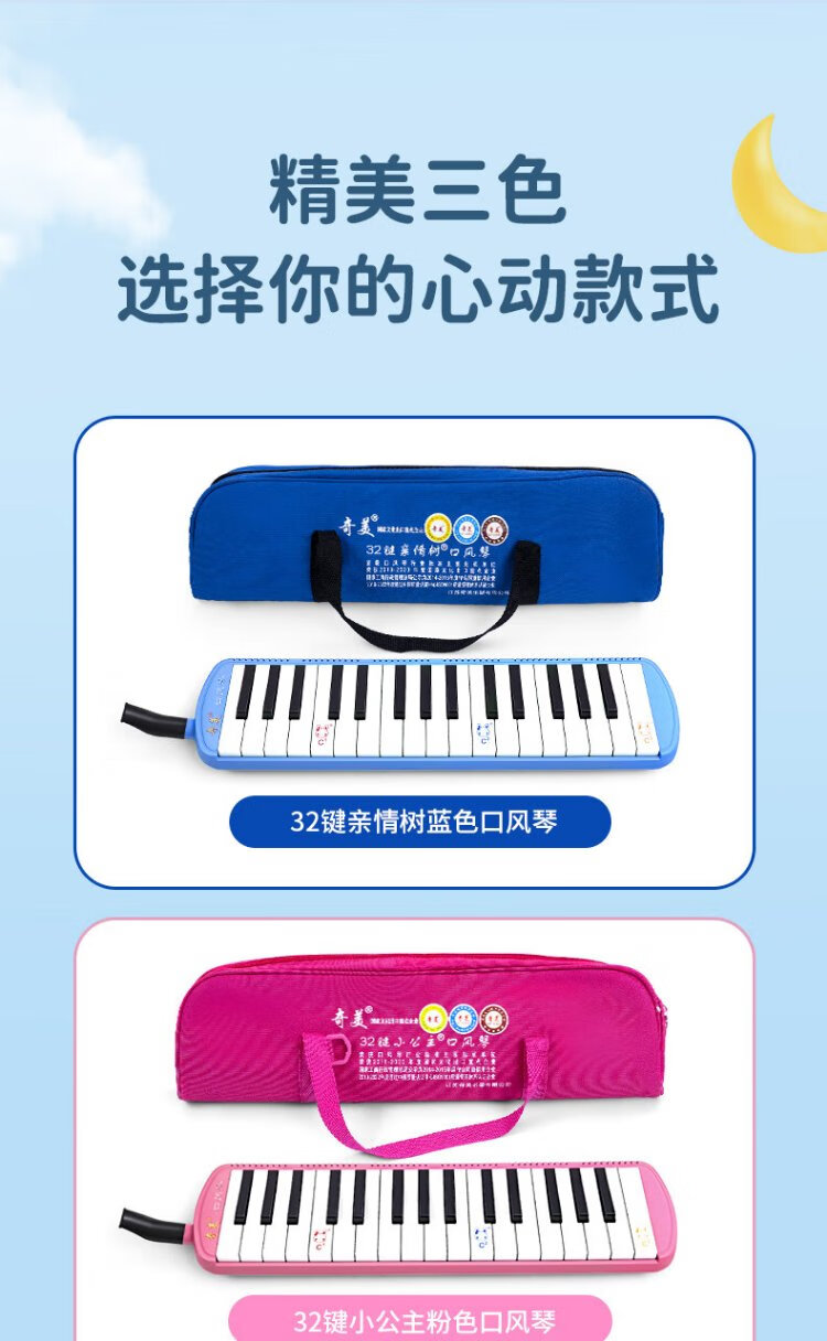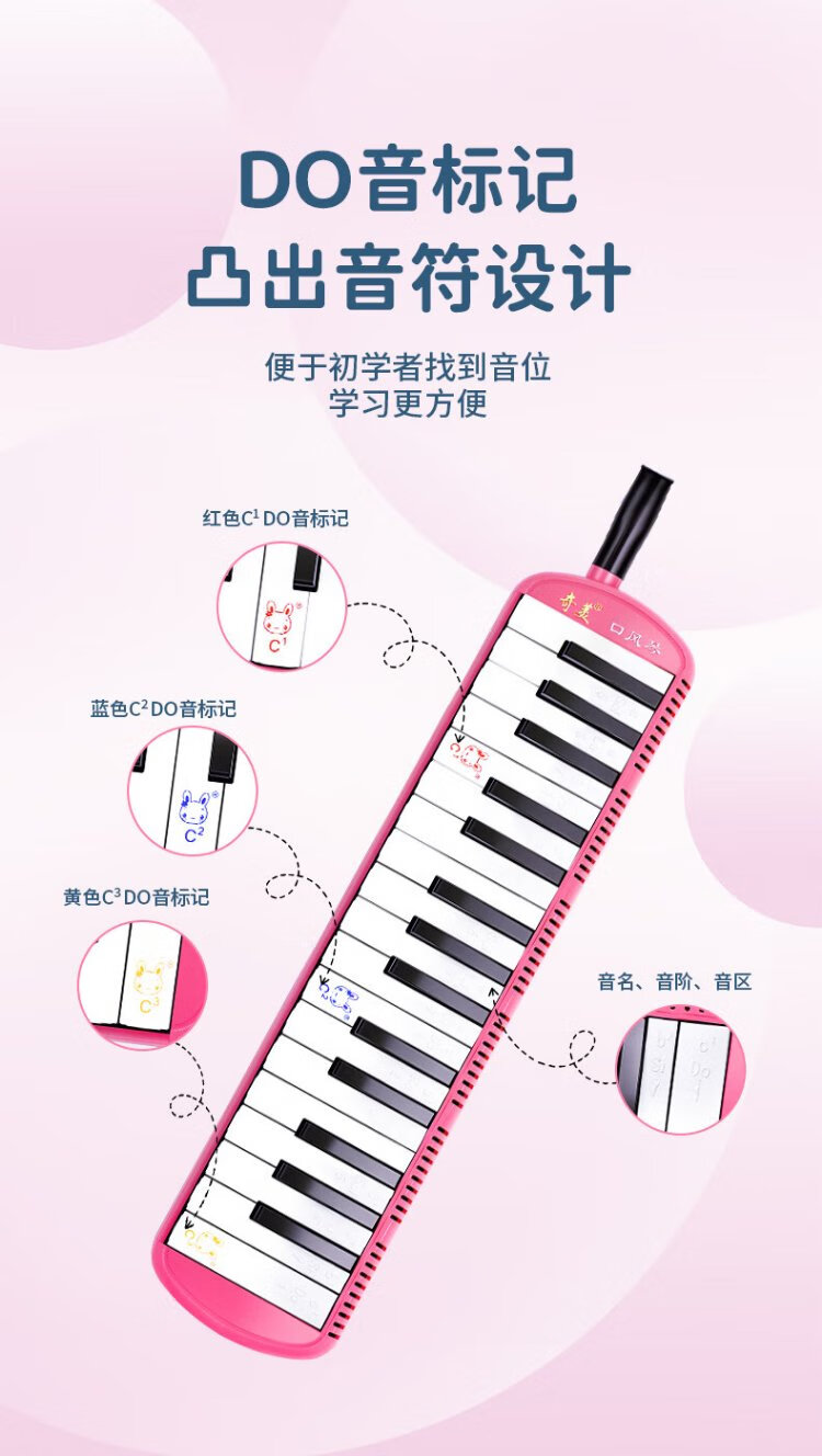 Chimei 32-key teaching recommendation mouth organ Little Princess Mouth Organ (Pink) with playing instructions + note stickers