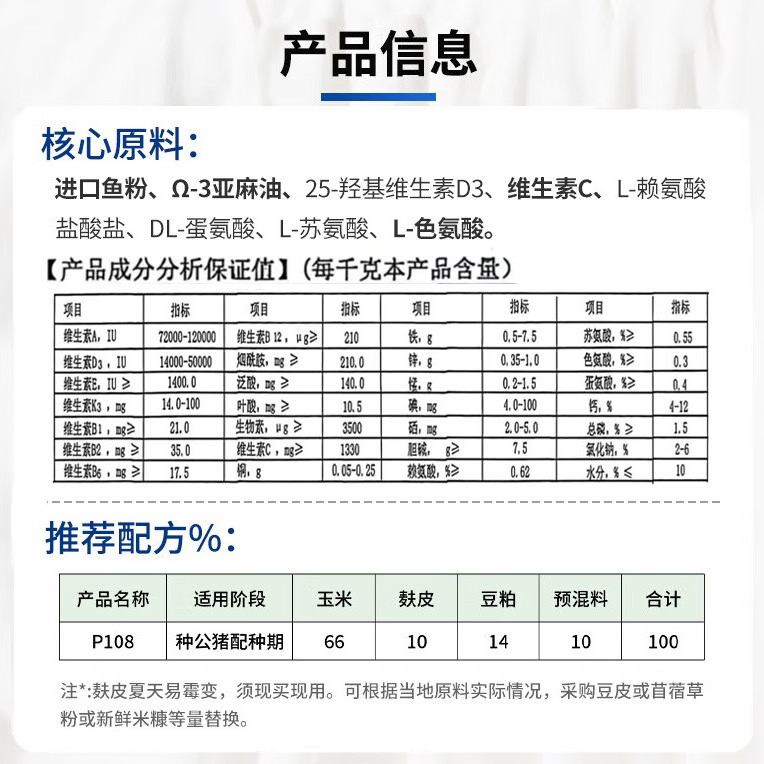 Chuanshi P108 10% boar compound premix pig feed for breeding boars net weight 20kg pig feed 20kg