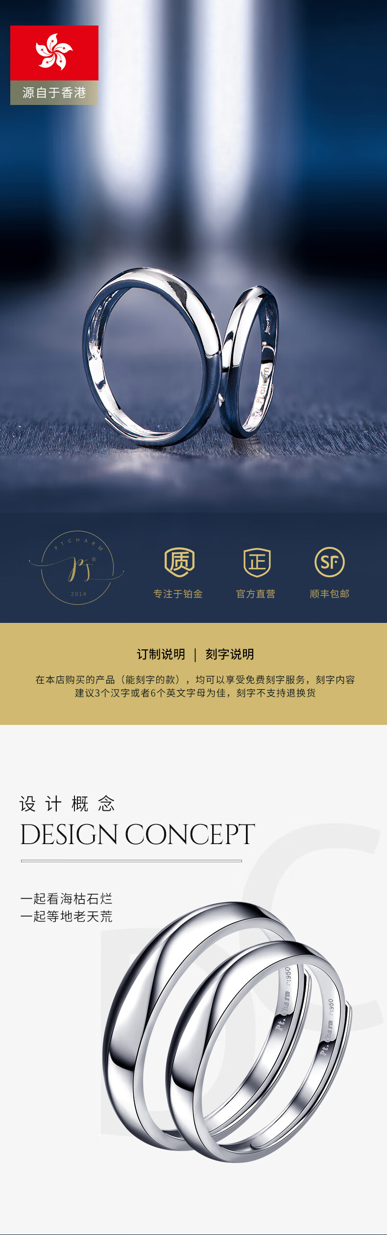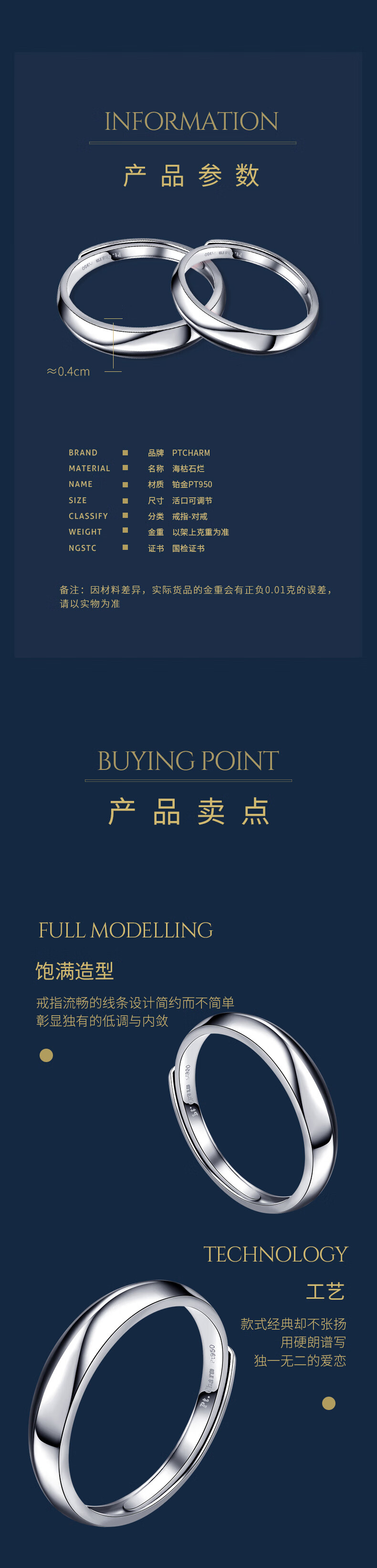 Pt.Charm platinum ring for men and women pt950 platinum glossy ring couple live mouth adjustable aperture spot pt950 single men's ring 4.1-4.2 grams