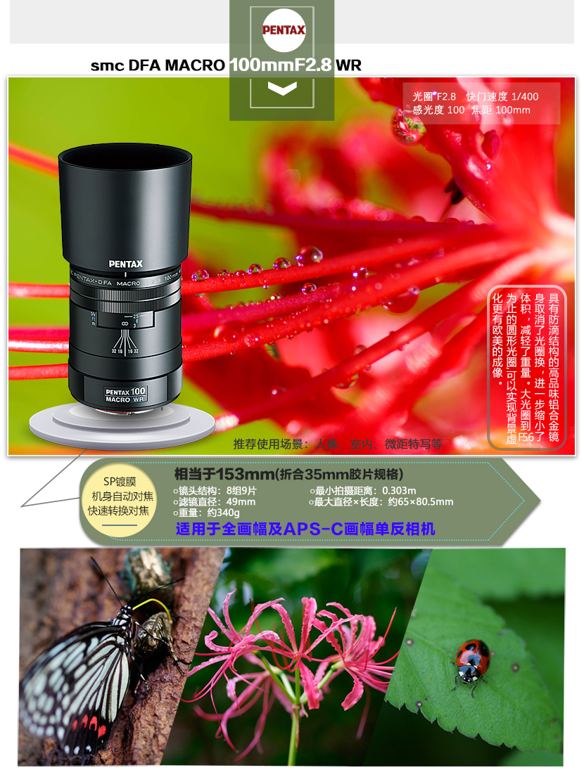 PENTAX SLR camera wide angle telephoto standard constant large aperture fixed focus 100 micro macro lens DFA100mmF2.8 macro lens