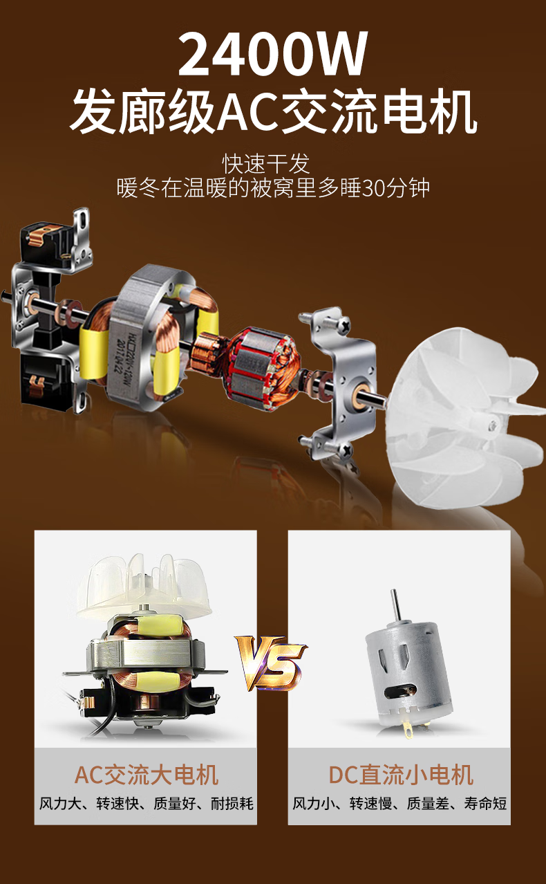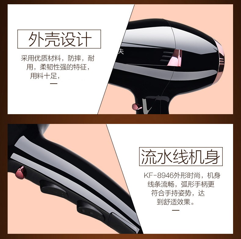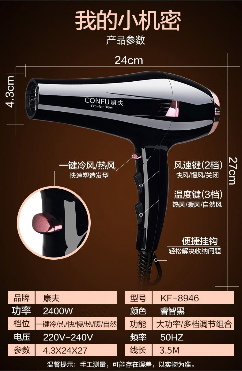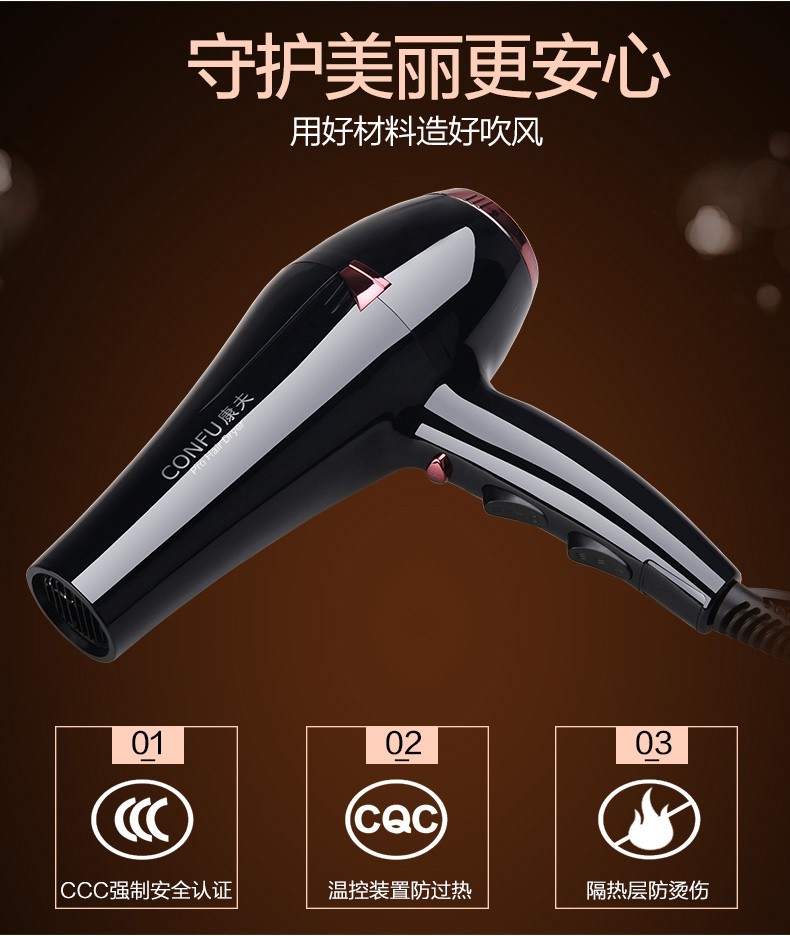Kangfu hair dryer household hair dryer high power 2400W professional hair salon barber shop high speed high wind speed drying hot and cold wind electric hair dryer