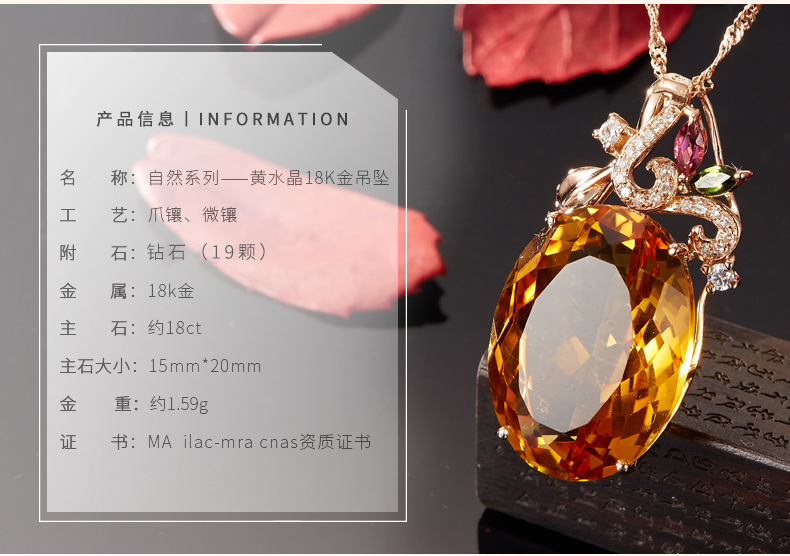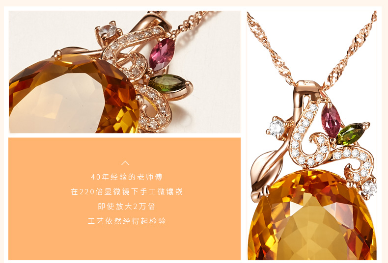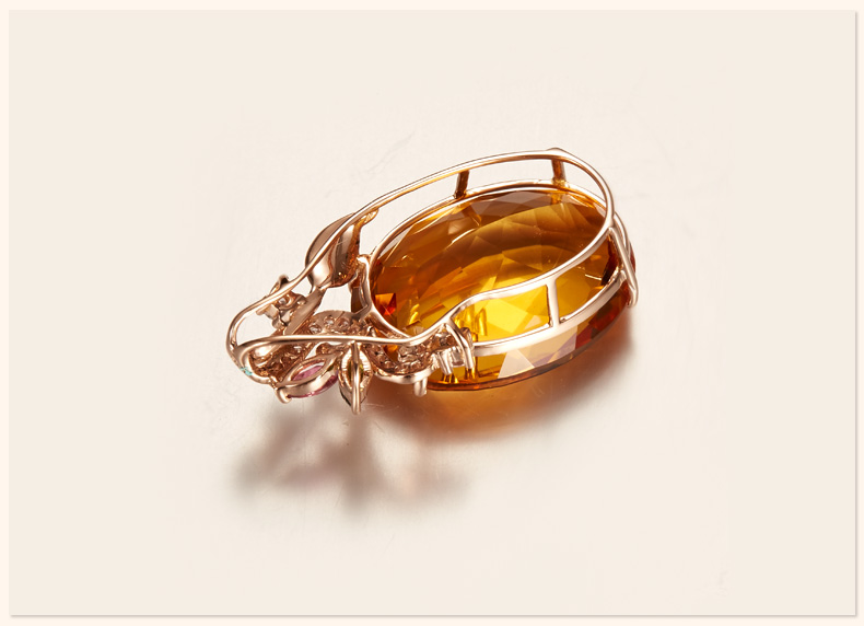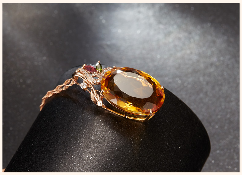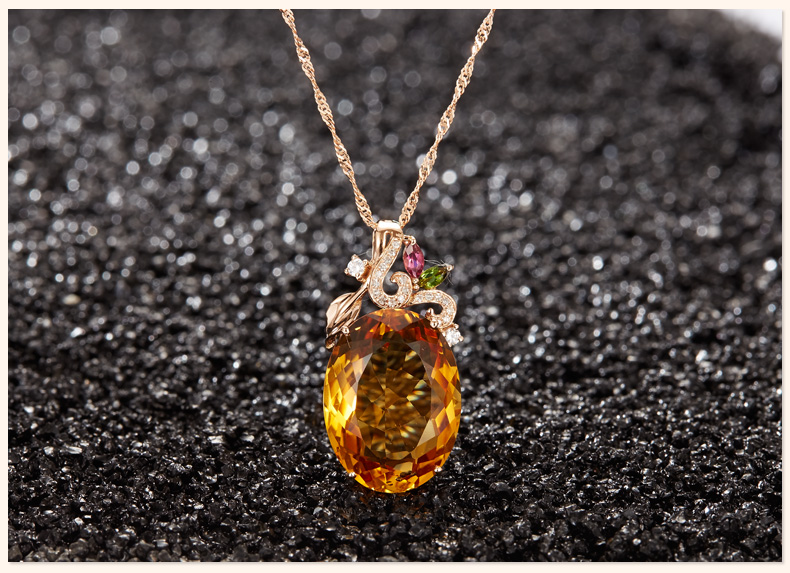 Ouchini Jewelry 18 carat citrine pendant colored gemstones 18k gold inlaid citrine necklace gift with certificate 18K rose gold (7-15 working days for customization)