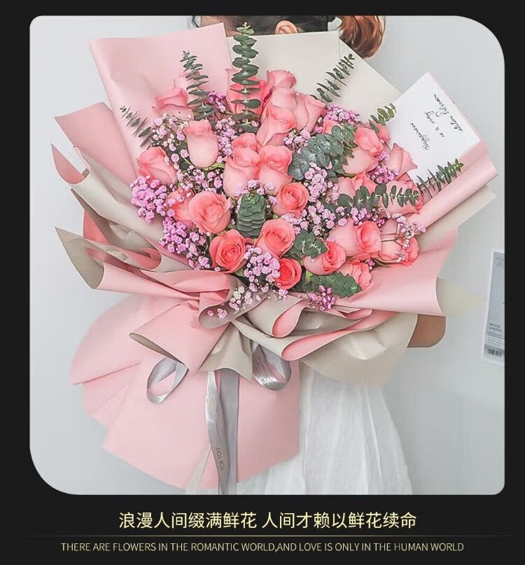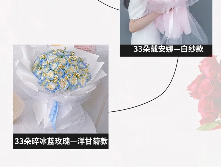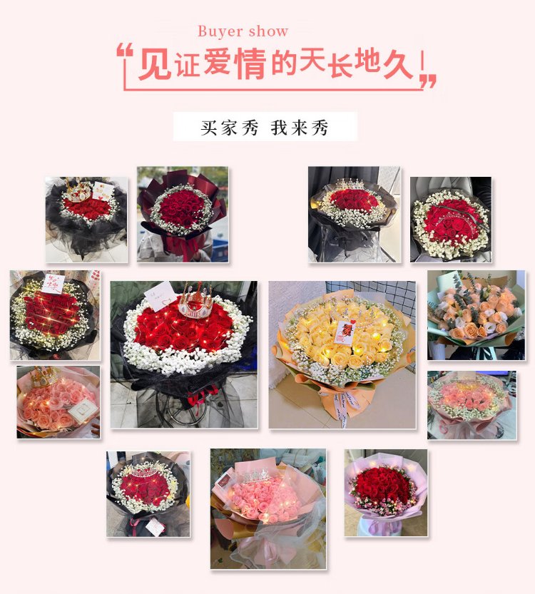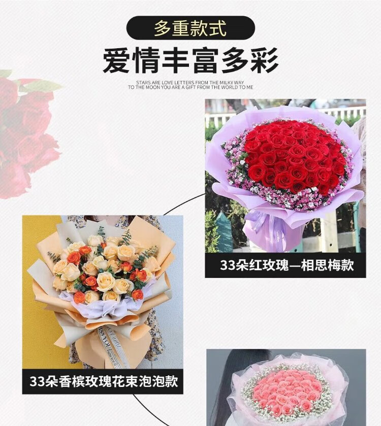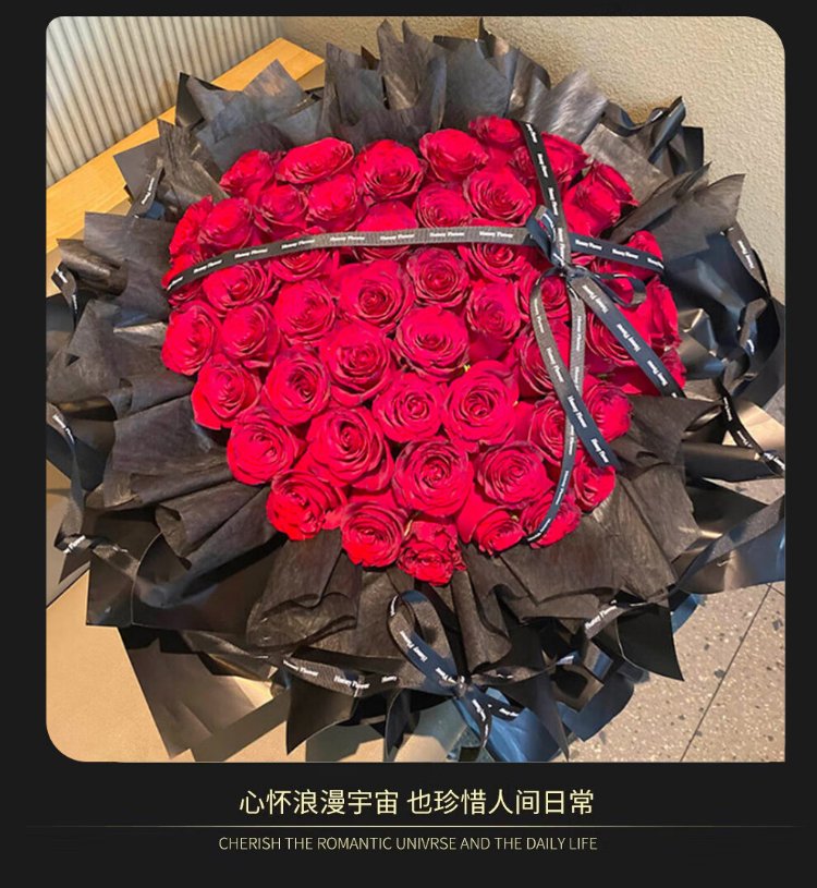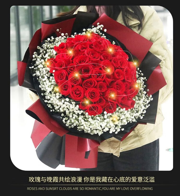 Xin Changcun Flowers Express Rose Bouquet for Girlfriend and Wife’s Birthday Gift Nationwide Flowers Delivered in the City 33 Red Roses Heart-Shaped Bouquet