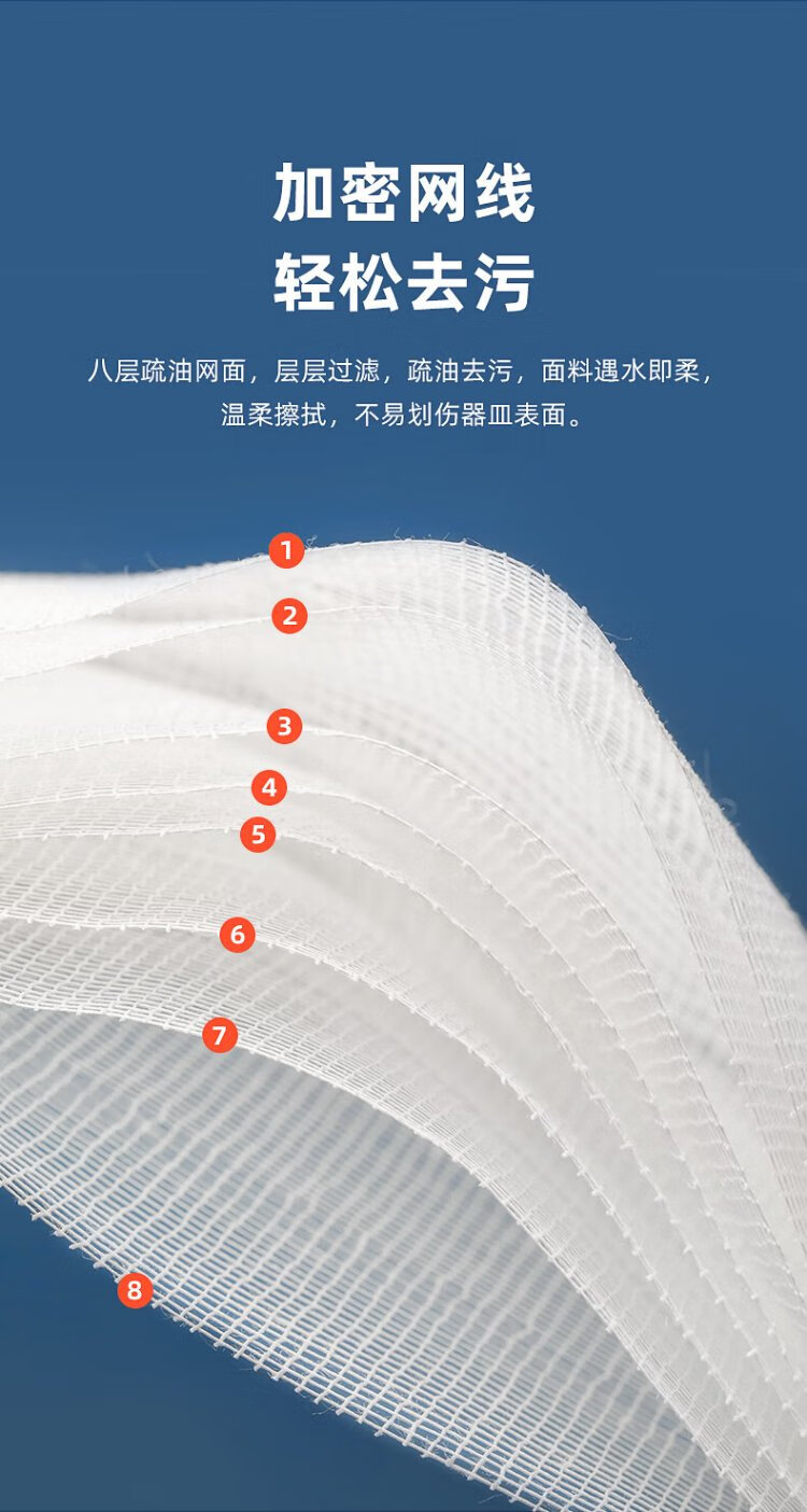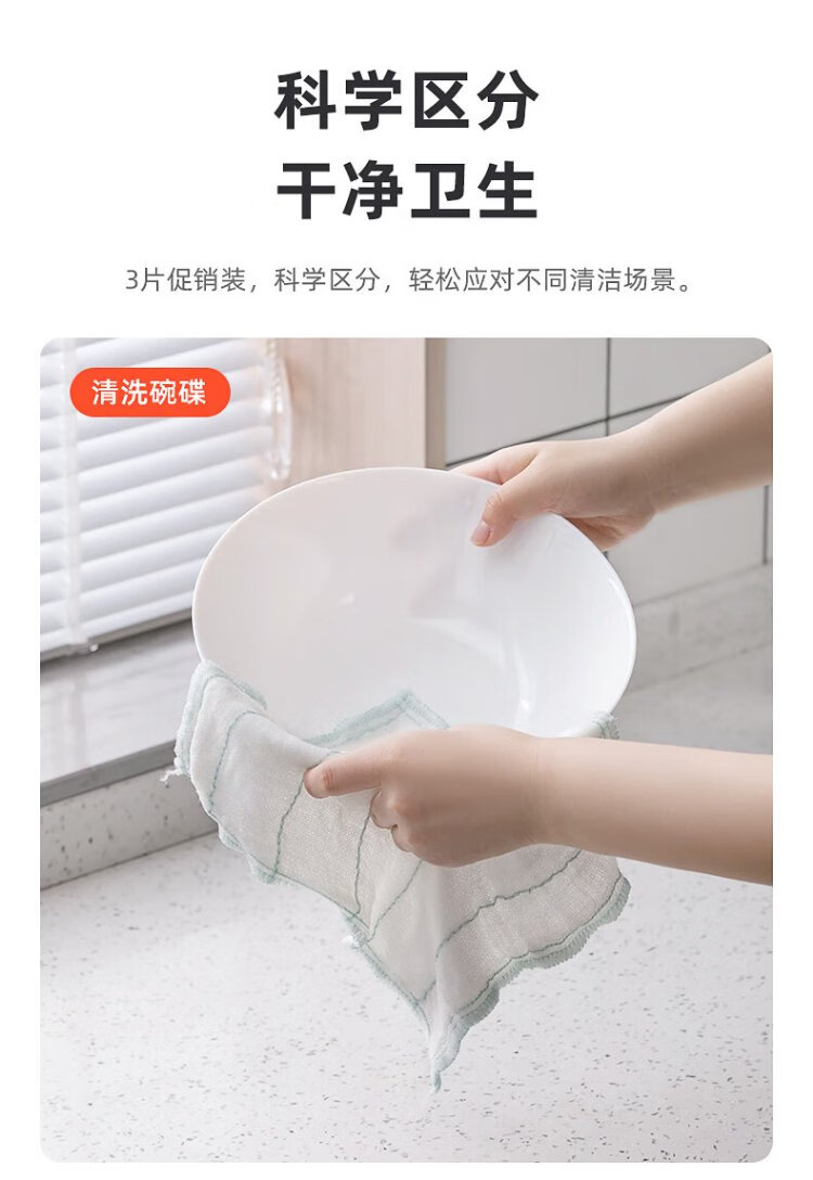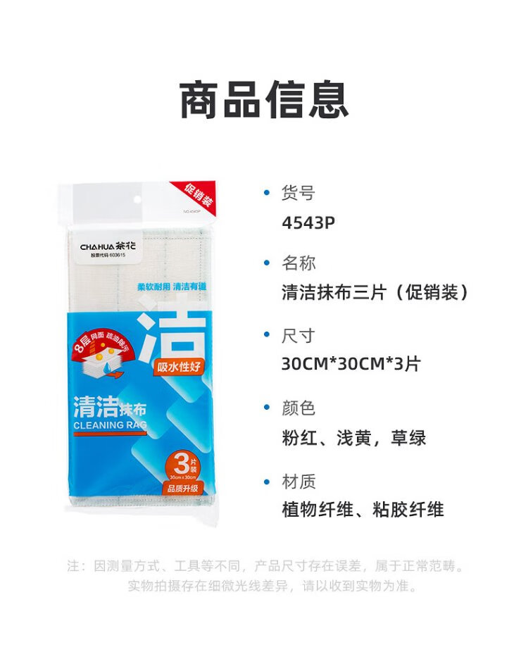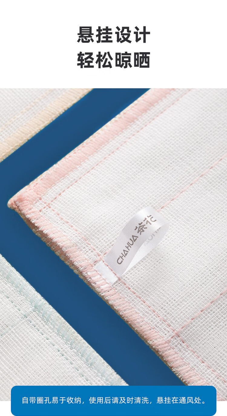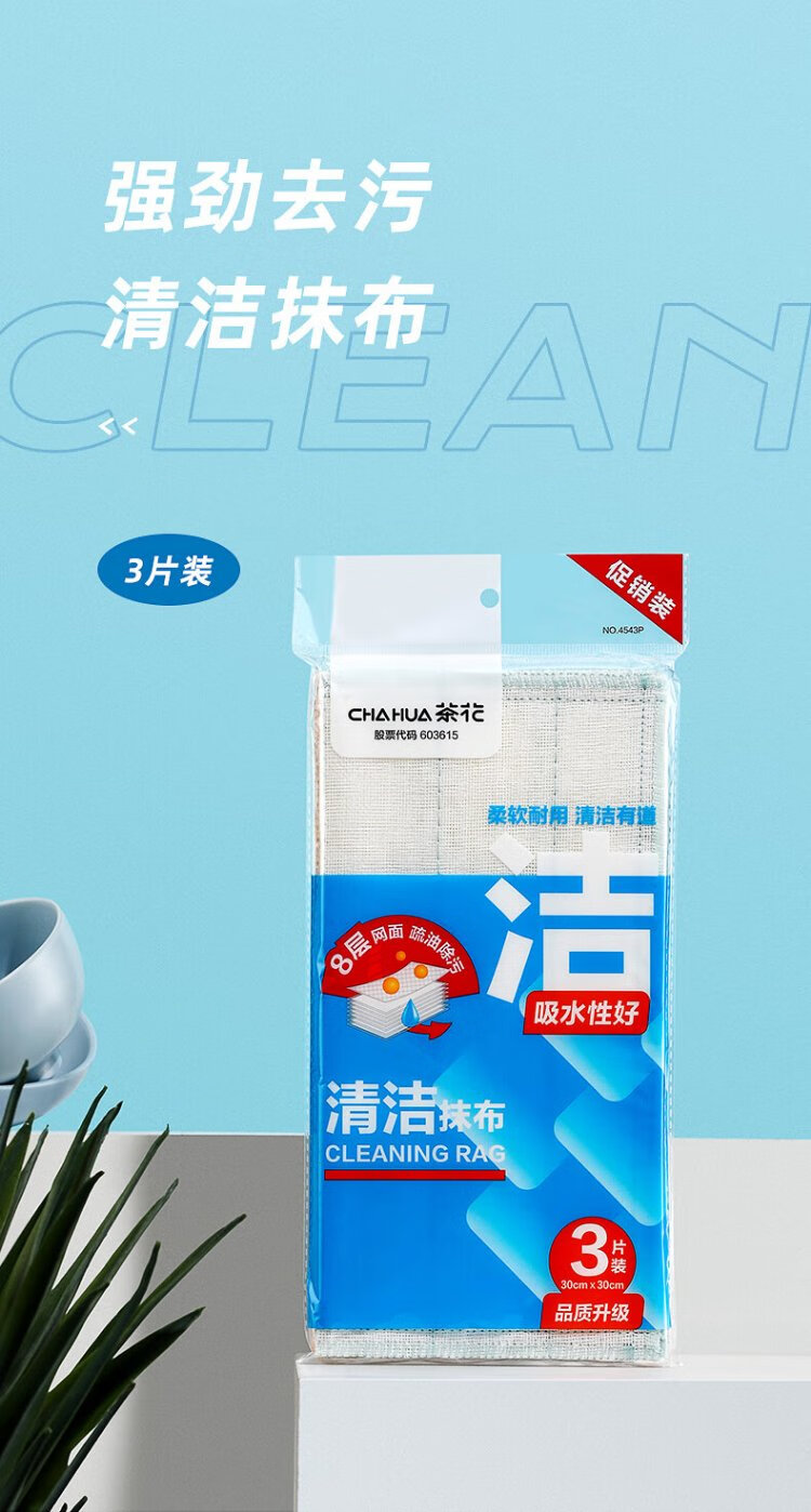 Camellia (CHAHUA) dishcloth, scouring pad, sandwich cotton, dishwashing towel, absorbent, clean, eight layers thickened, 2 packs, 6 pieces in total