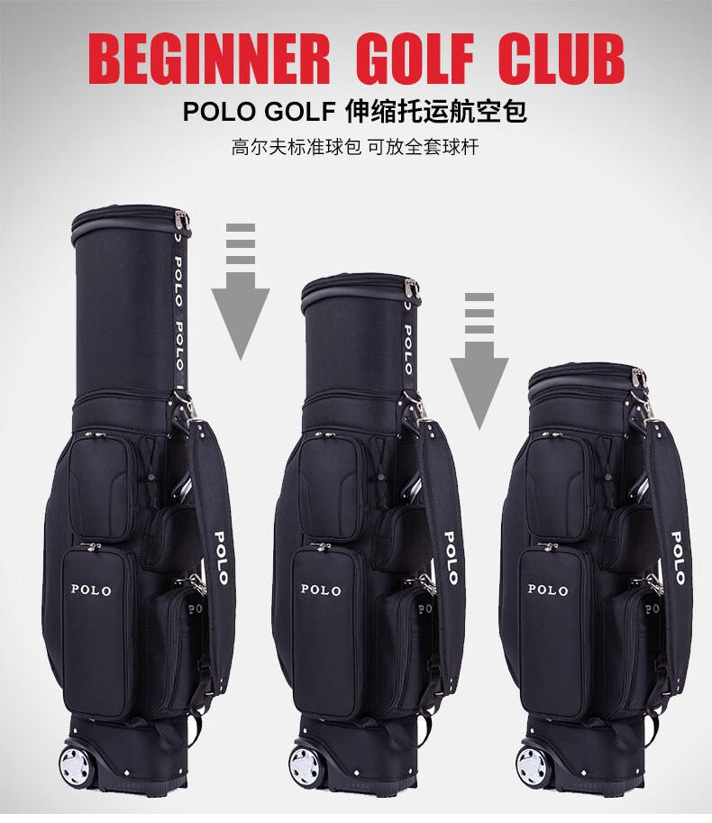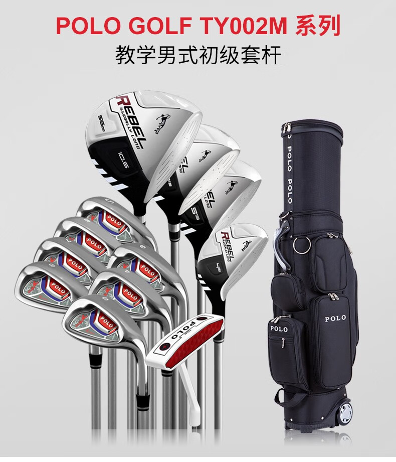 POLO golf club men's junior and intermediate practice set, complete set of carbon clubs, professional competition clubs, complete set of steel shaft + telescopic ball bag