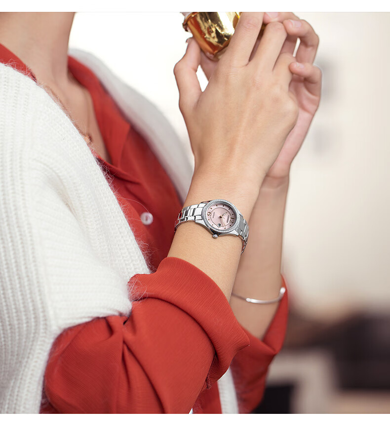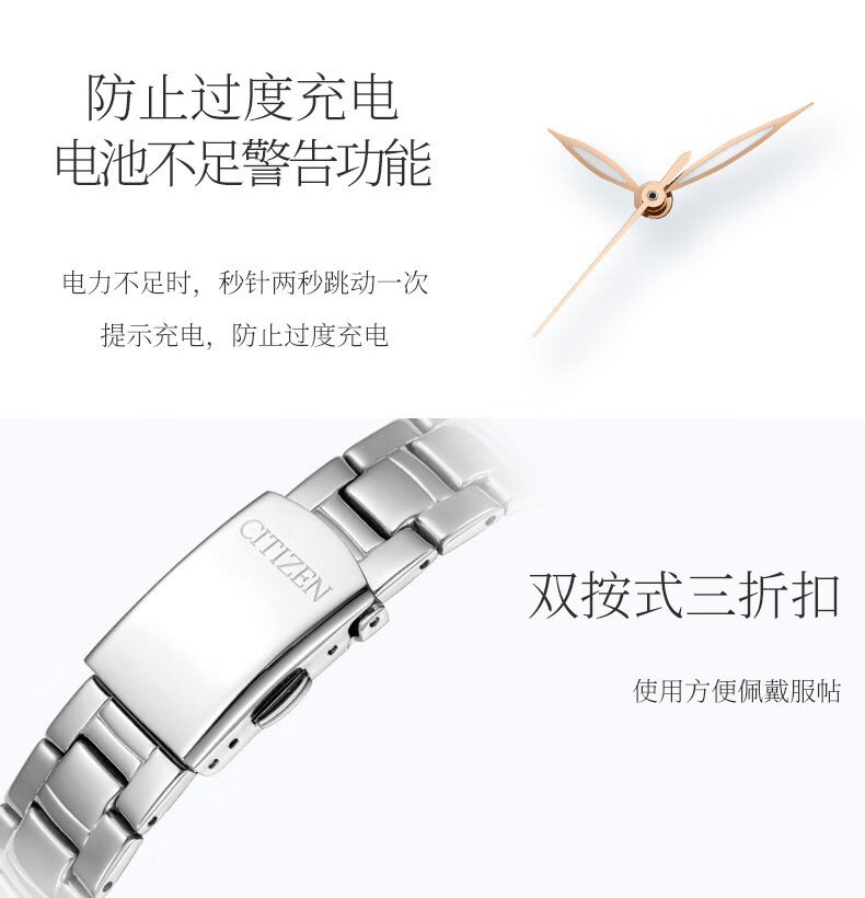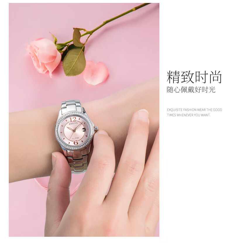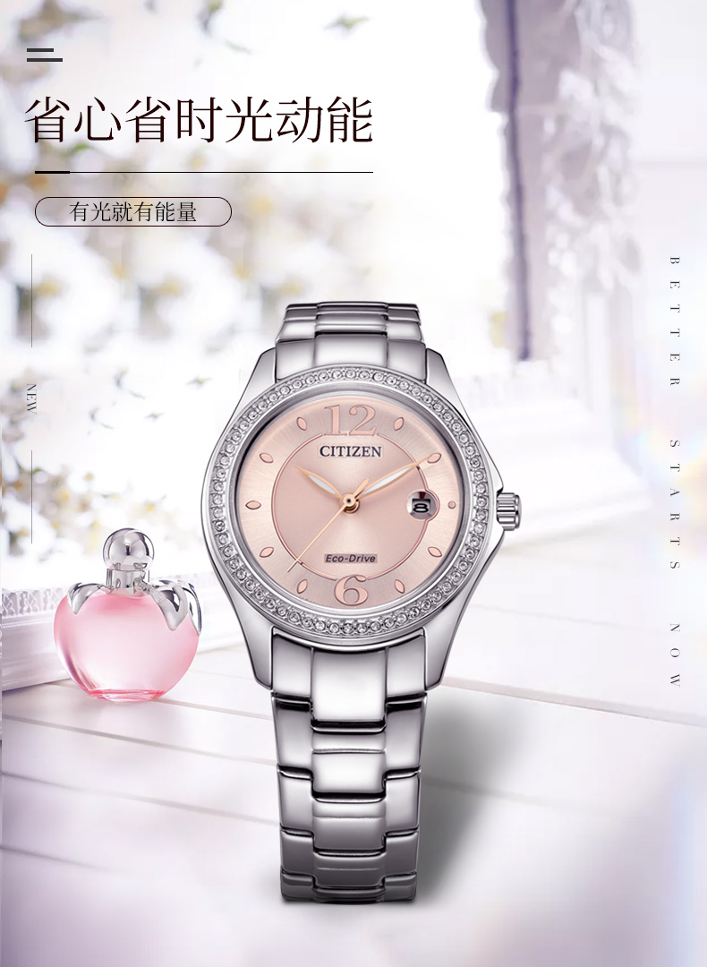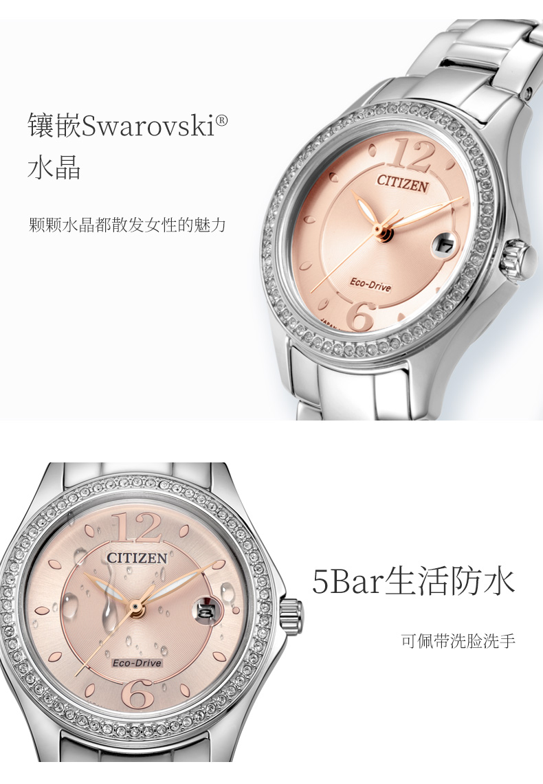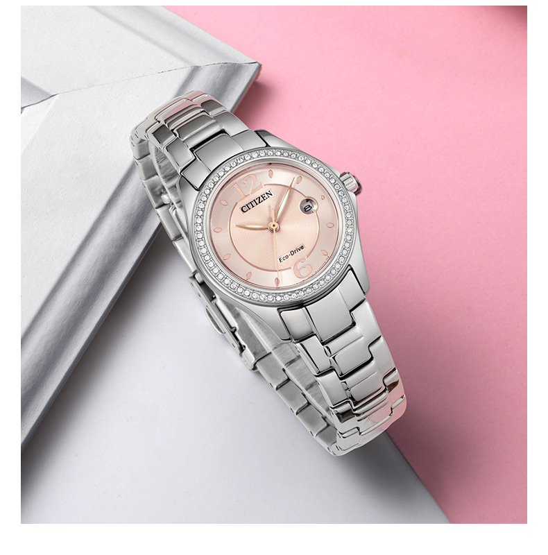 CITIZEN watch women's Japanese and Korean watch light kinetic energy powder dial day display steel belt fashion business Christmas gift FE1140-51X