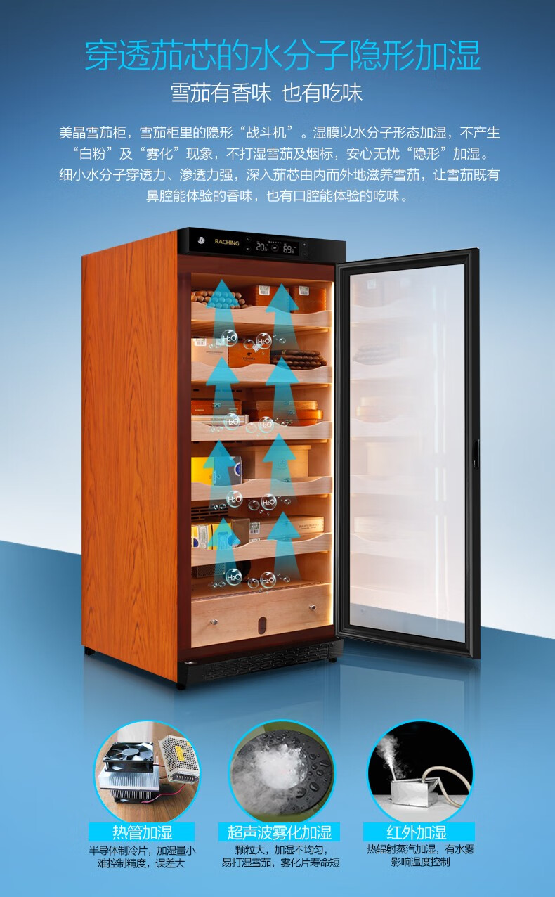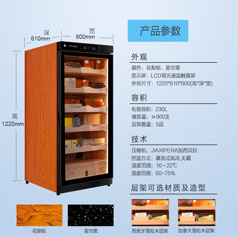 Meijing (raching) C230A solid wood constant temperature and humidity cigar cabinet humidifier compressor precise temperature control humidity cigar humidor humidor household starry sky black (Canadian cedar wood shelf)
