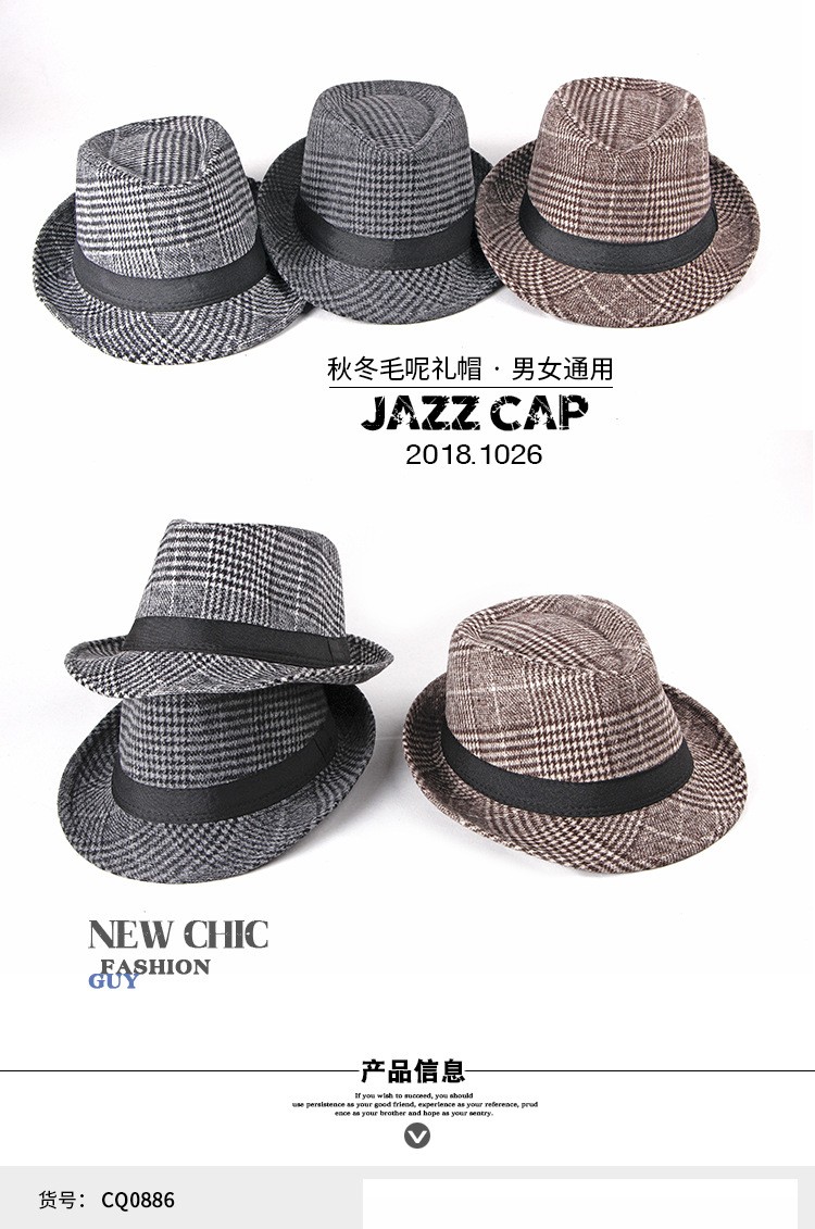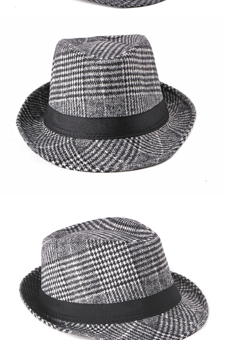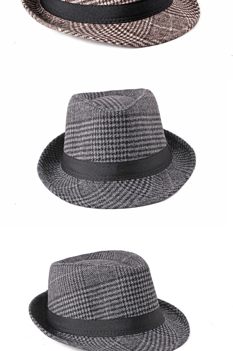 Select letter hat men's autumn and winter Korean style trendy warm thickened woolen hat men and women outdoor casual plaid British jazz hat line plaid-coffee one size fits all (56-58CM) head circumference