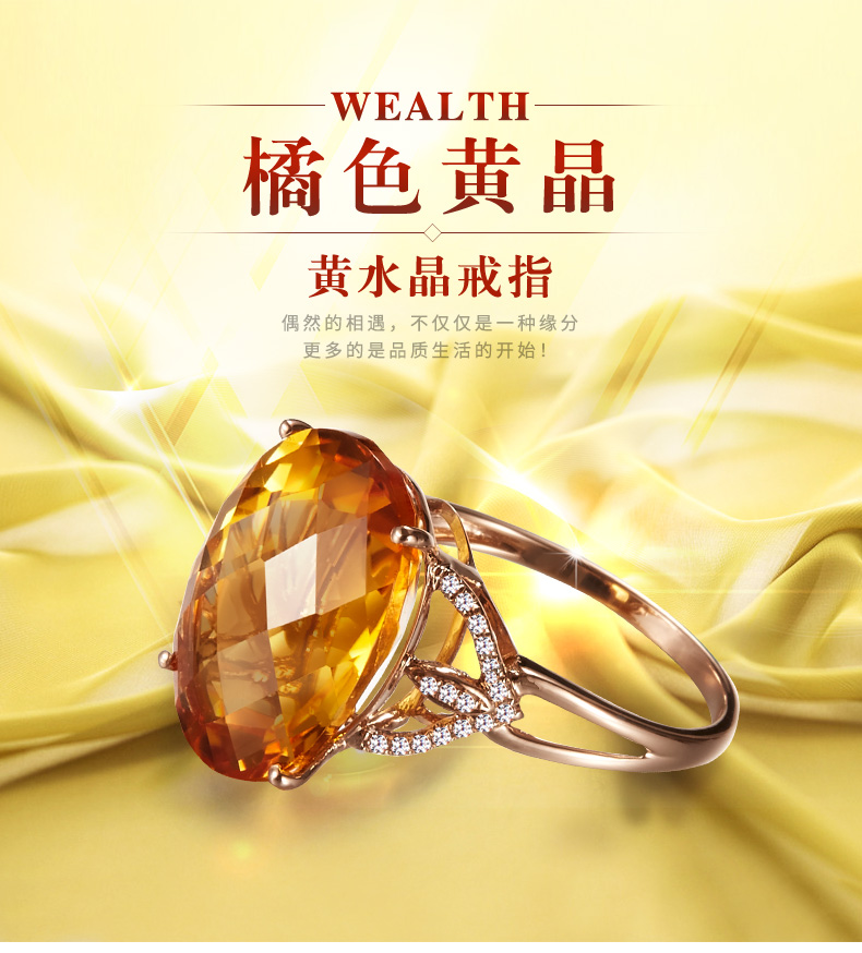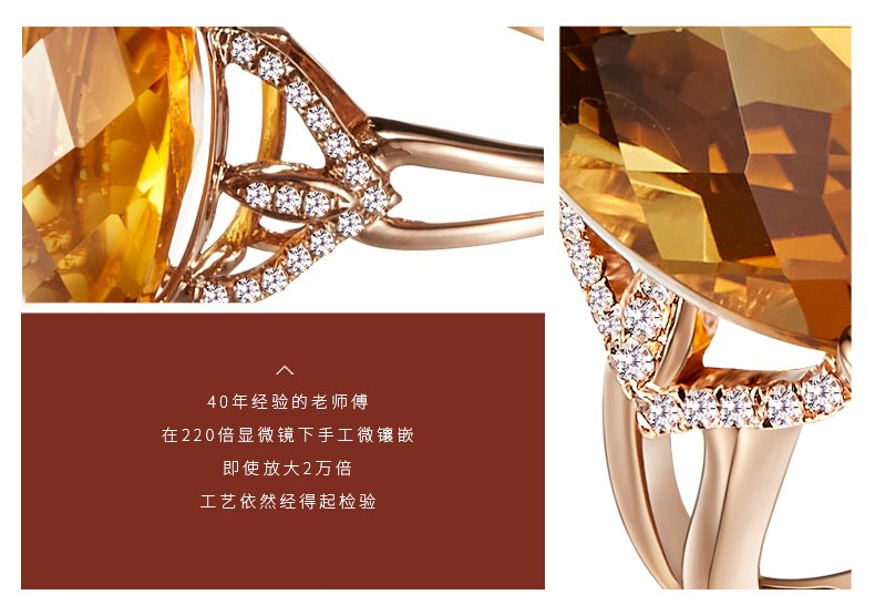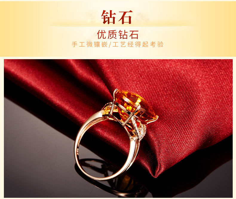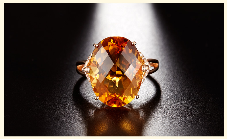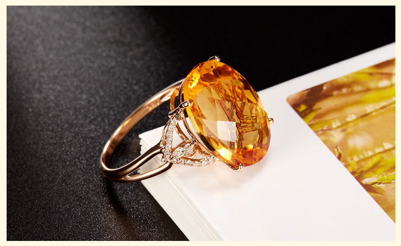 Ou Ceni 18k gold set with diamonds, 10 carat citrine ring face, rose gold ring, colored gemstones, 18K rose gold (sold in stock, needs 7-10 working days for customization)