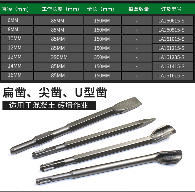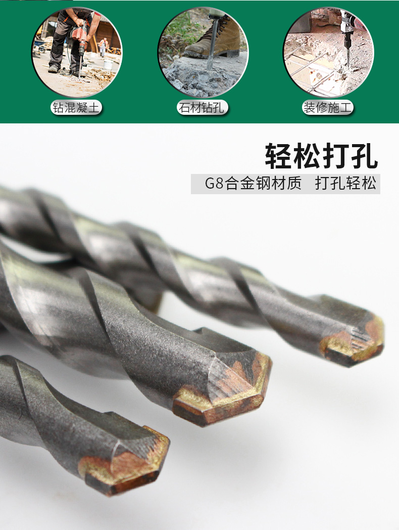 LAOA (LAOA) electric hammer drill bit, two pits and two grooves, impact drill bit, square shank electric hammer drill bit, concrete extended wall drill, round shank 12*350mm single LA161235-R
