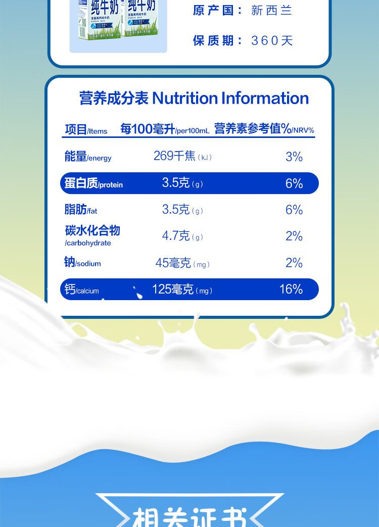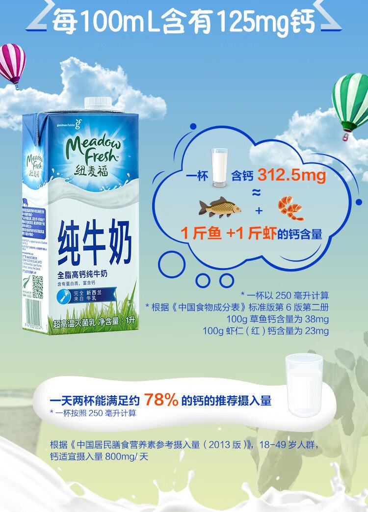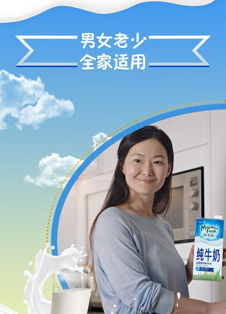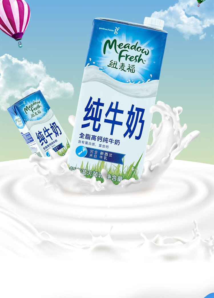 Meadow fresh imported from New Zealand, 3.5g protein, high calcium whole milk, 1L*12 boxes/box, good gift choice