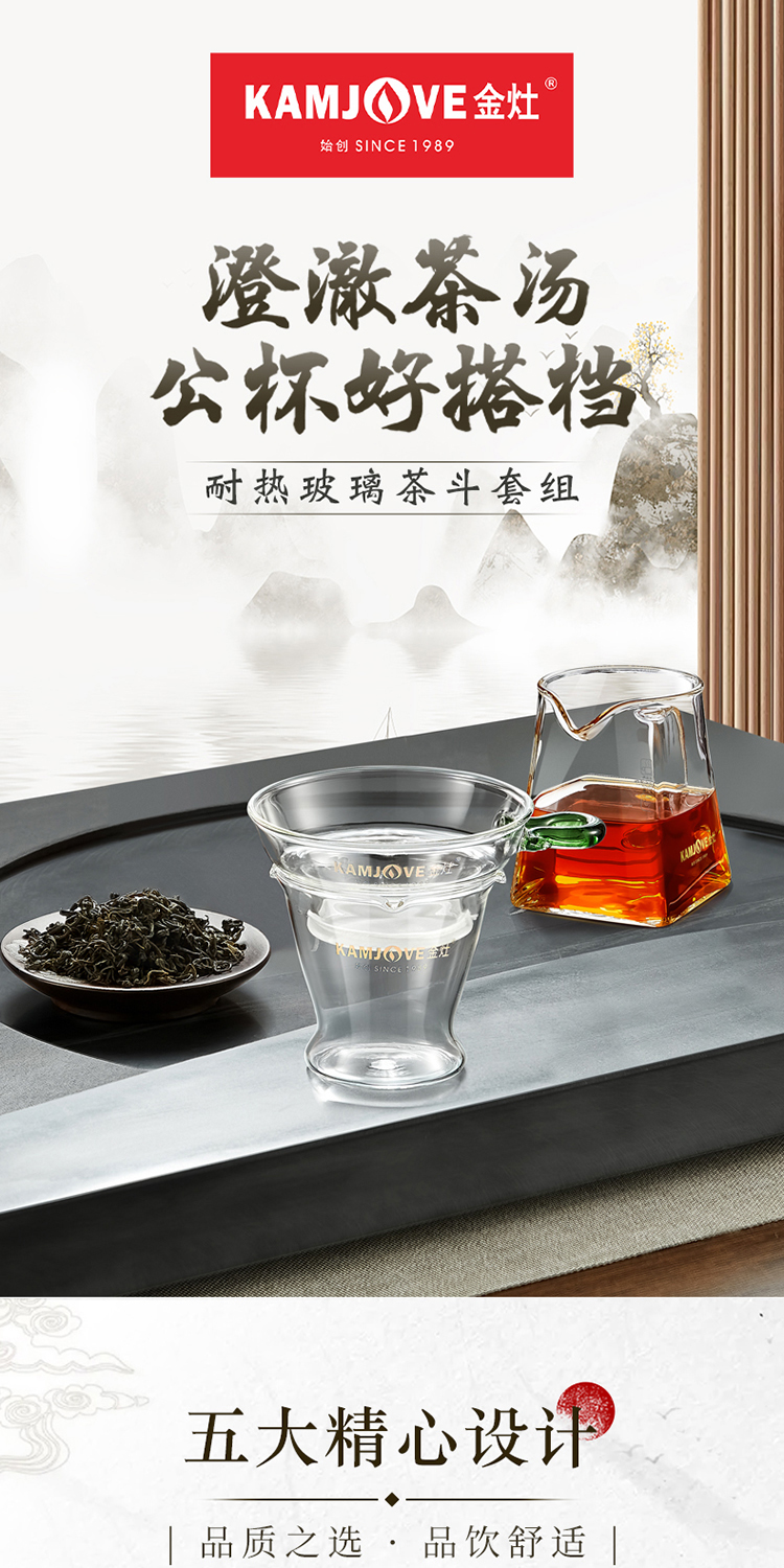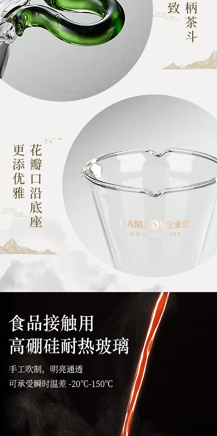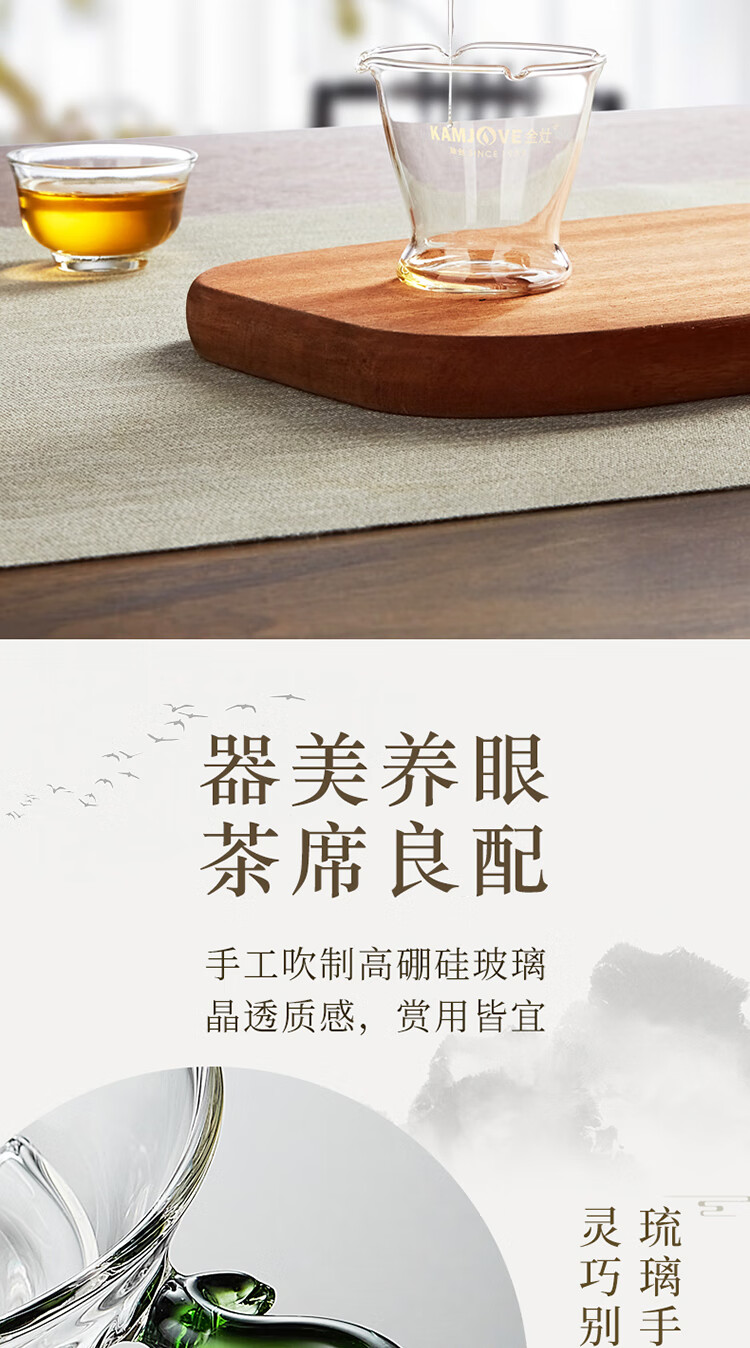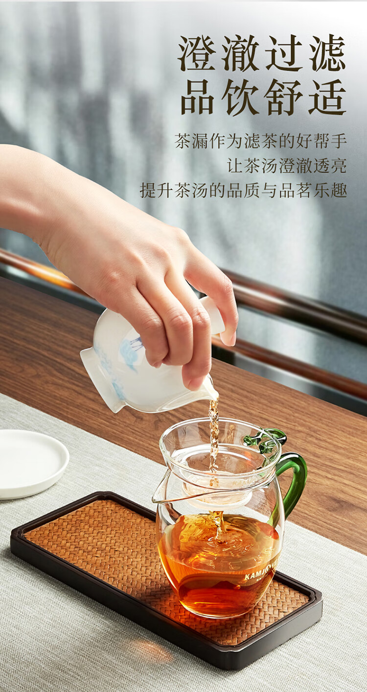 KAMJOVE glass tea funnel, tea strainer, high temperature resistant glass tea strainer, Kung Fu tea set accessories GO-08 set