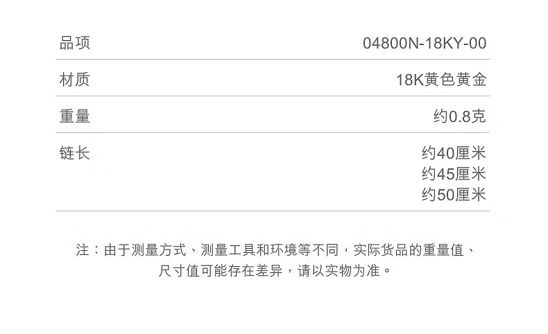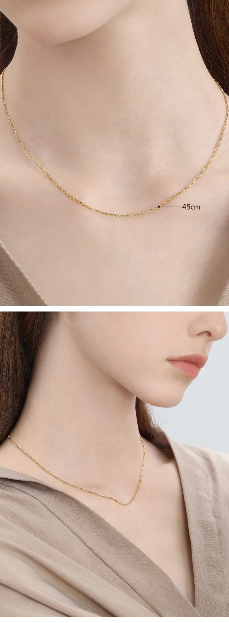 Chow Sang Sang 18K yellow gold clavicle colored gold necklace women's plain chain 04800N18KY 45 cm