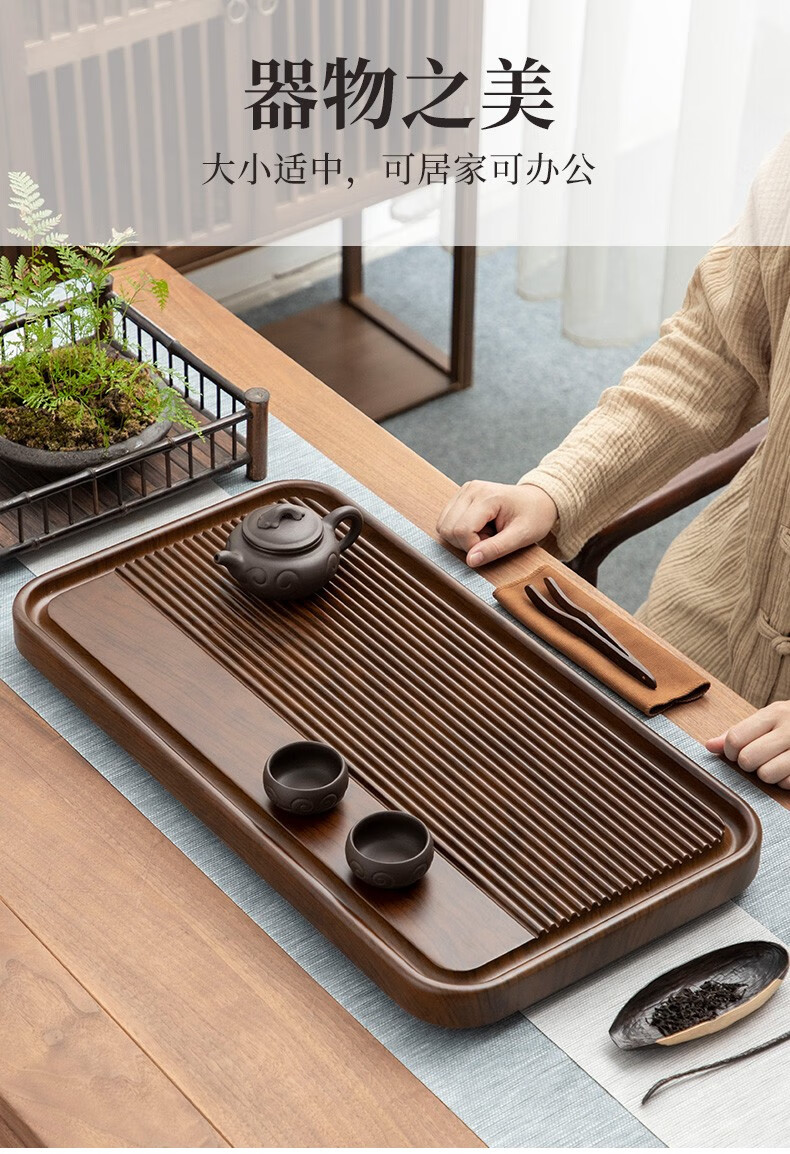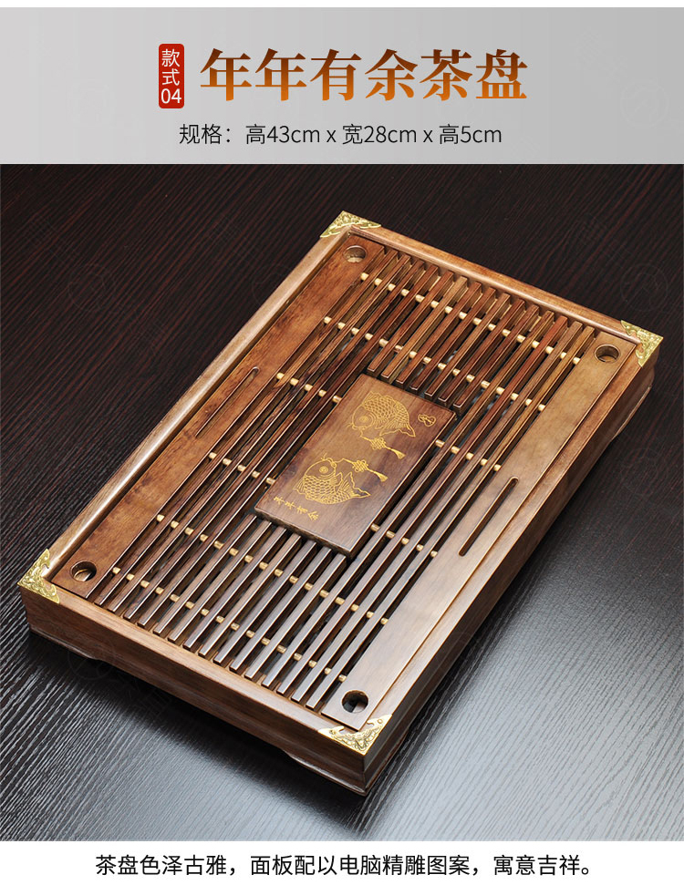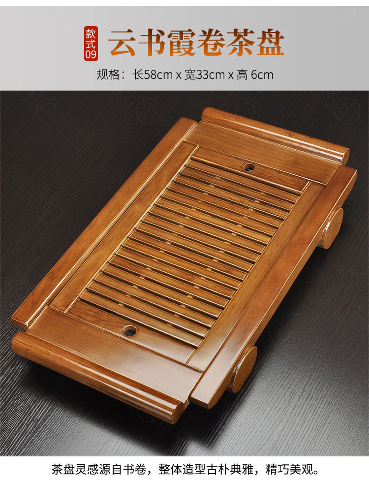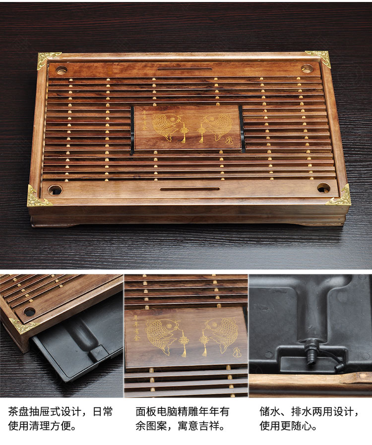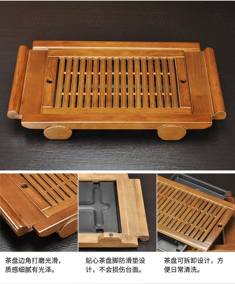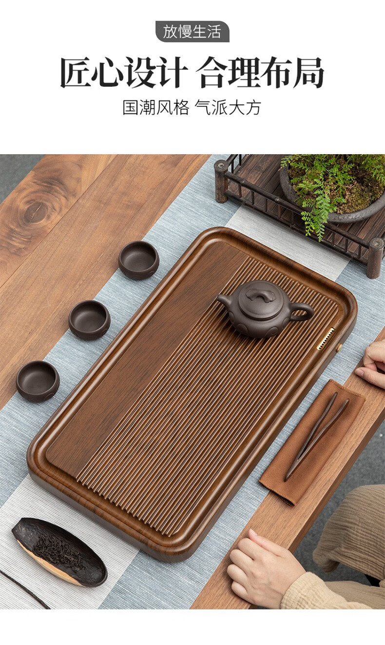 Tang Feng high-end Kung Fu tea set tea tray simple home living room tea cup tray rectangular drainage drain tea table with drainage Hexiang Youmeng 55*33cm (86)