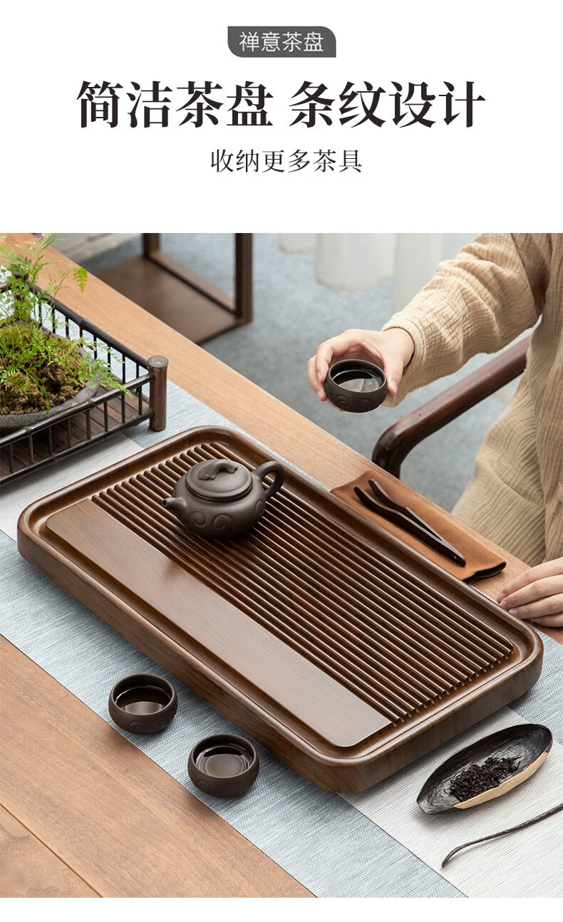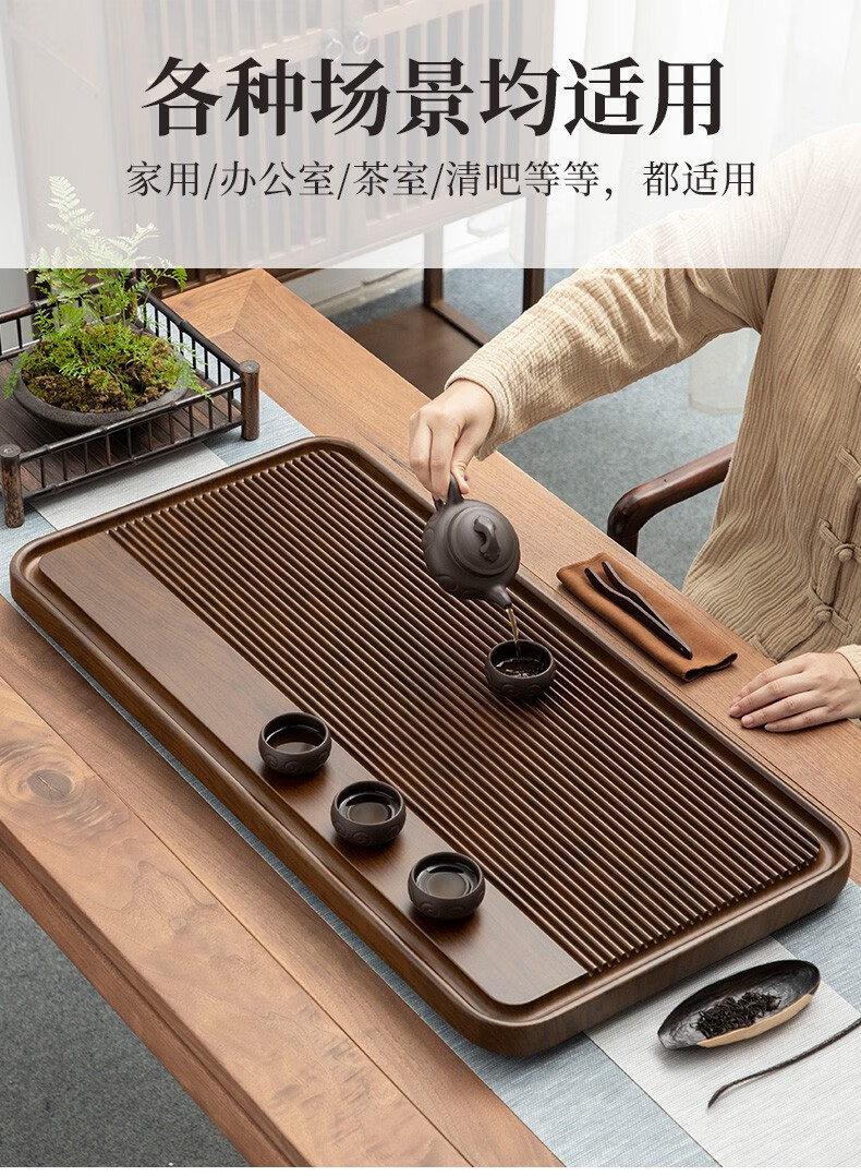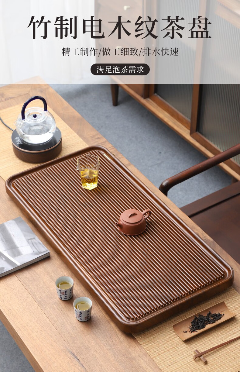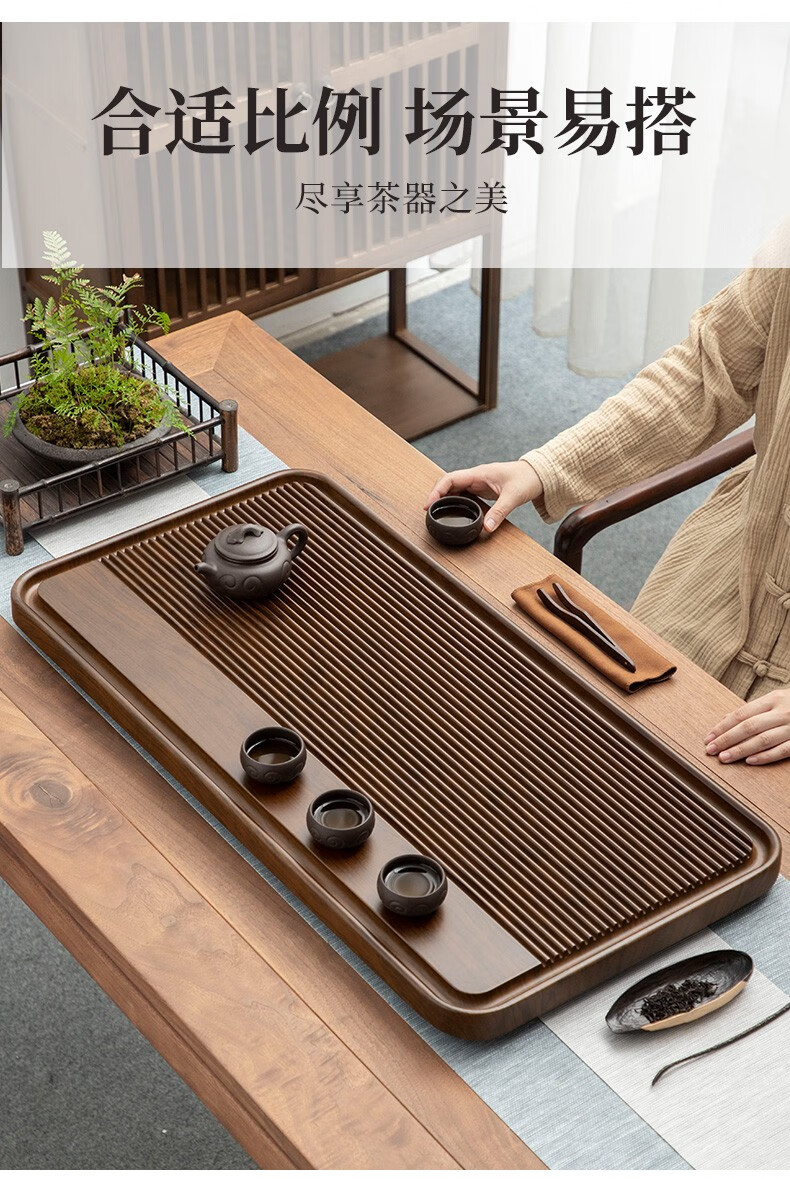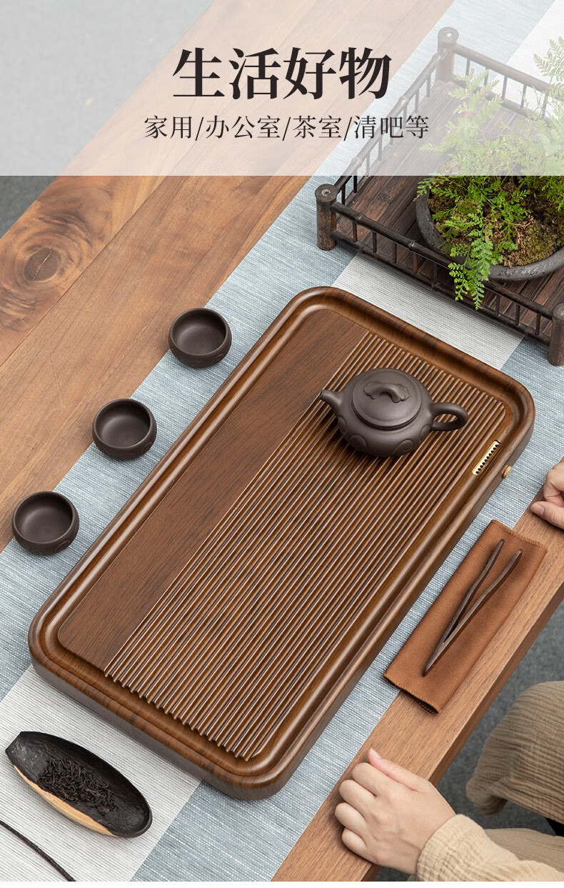 Tang Feng high-end Kung Fu tea set tea tray simple home living room tea cup tray rectangular drainage drain tea table with drainage Hexiang Youmeng 55*33cm (86)