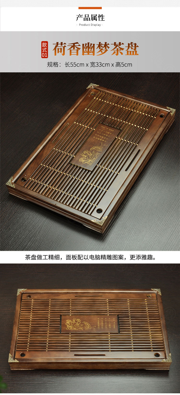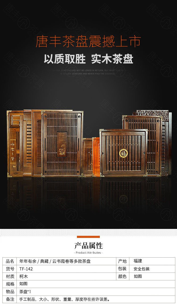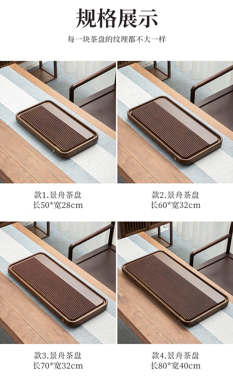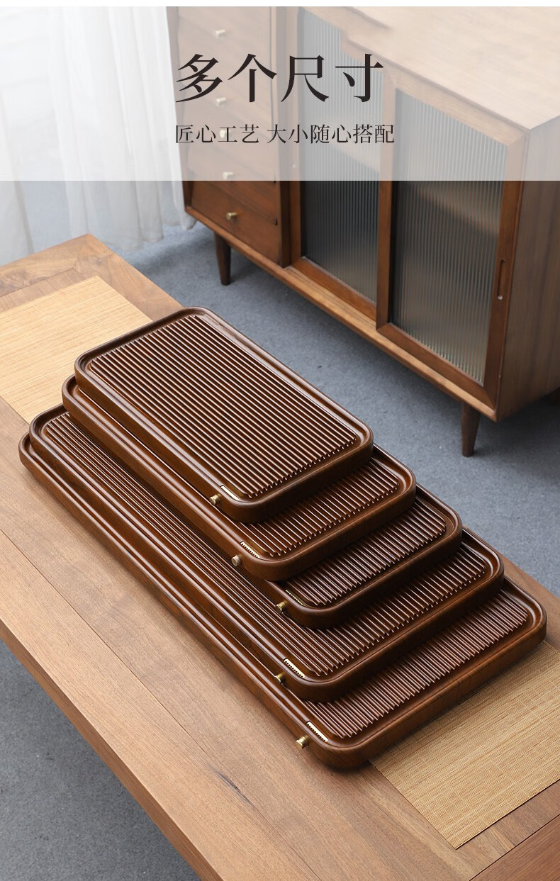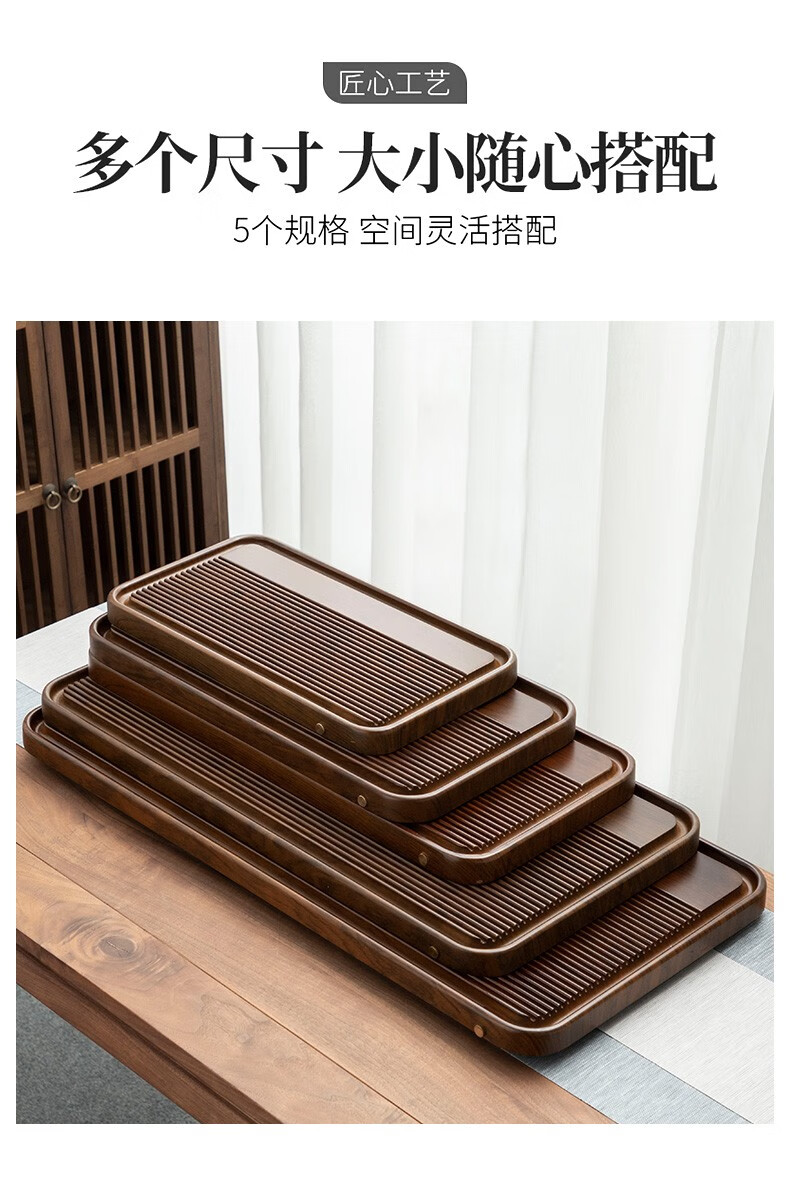 Tang Feng high-end Kung Fu tea set tea tray simple home living room tea cup tray rectangular drainage drain tea table with drainage Hexiang Youmeng 55*33cm (86)