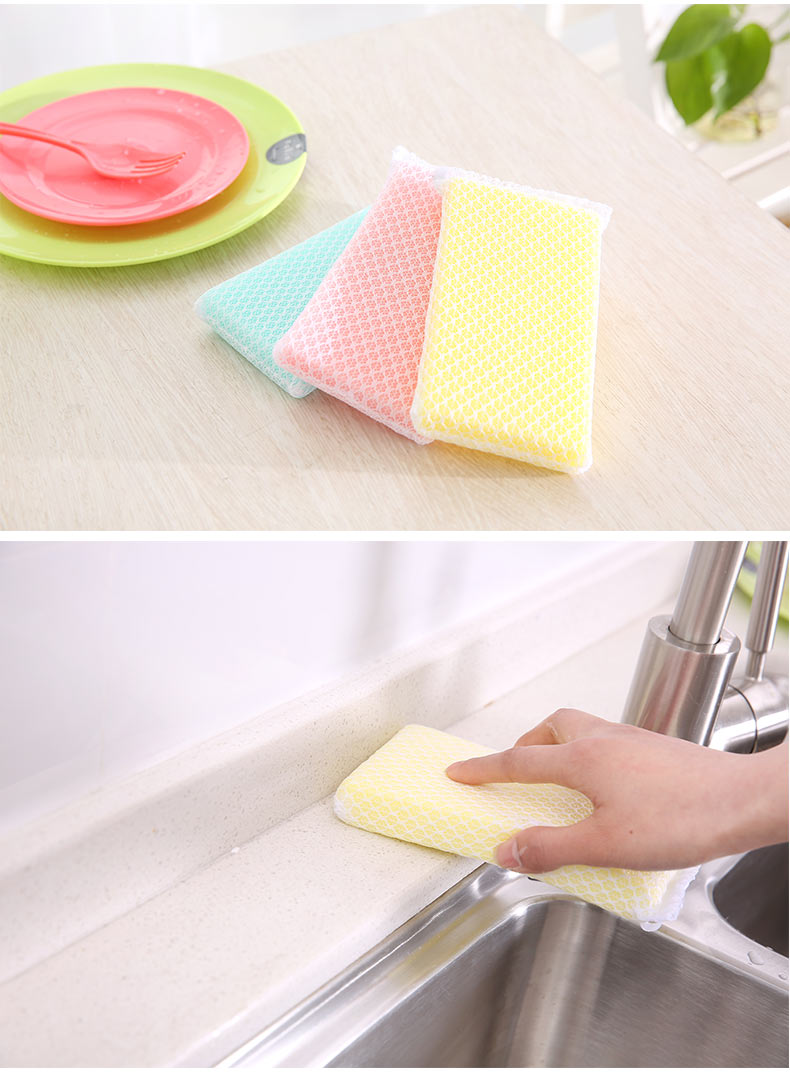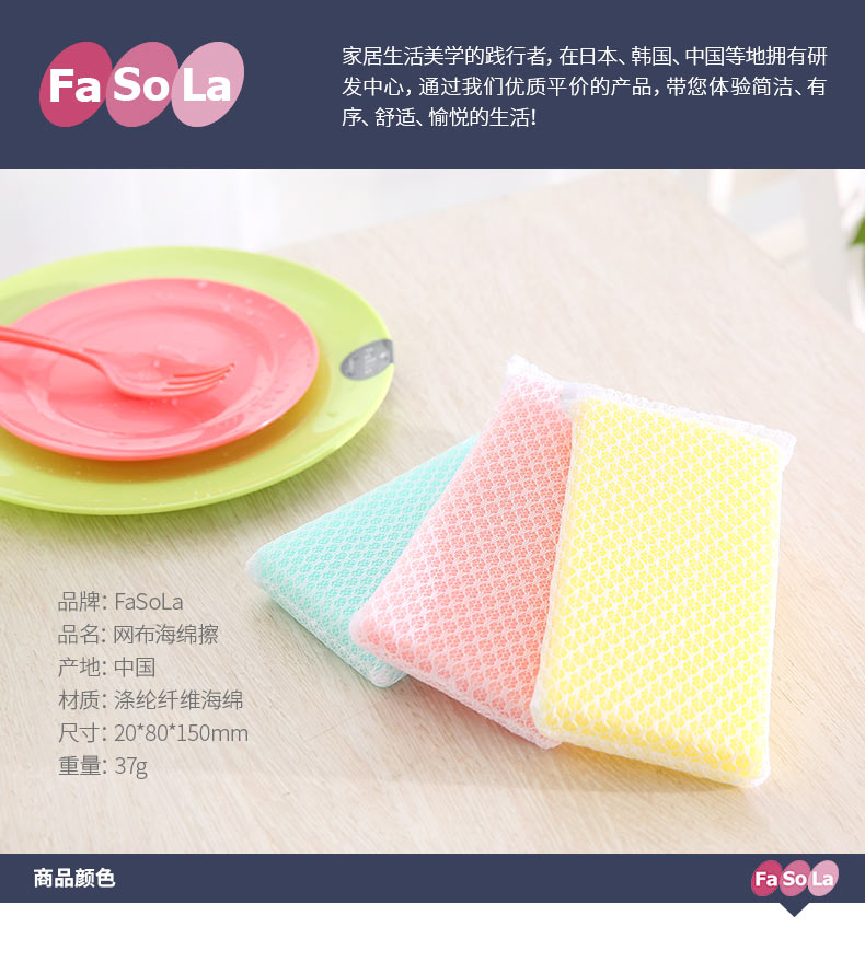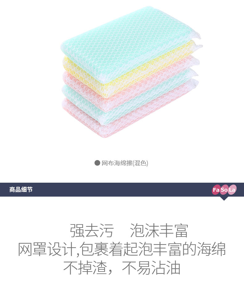 FaSoLa sponge wipe scouring pad 5 pieces for pot scrubbing, dishwashing, mesh sponge cloth, kitchen cleaning and decontamination wipes, mixed colors