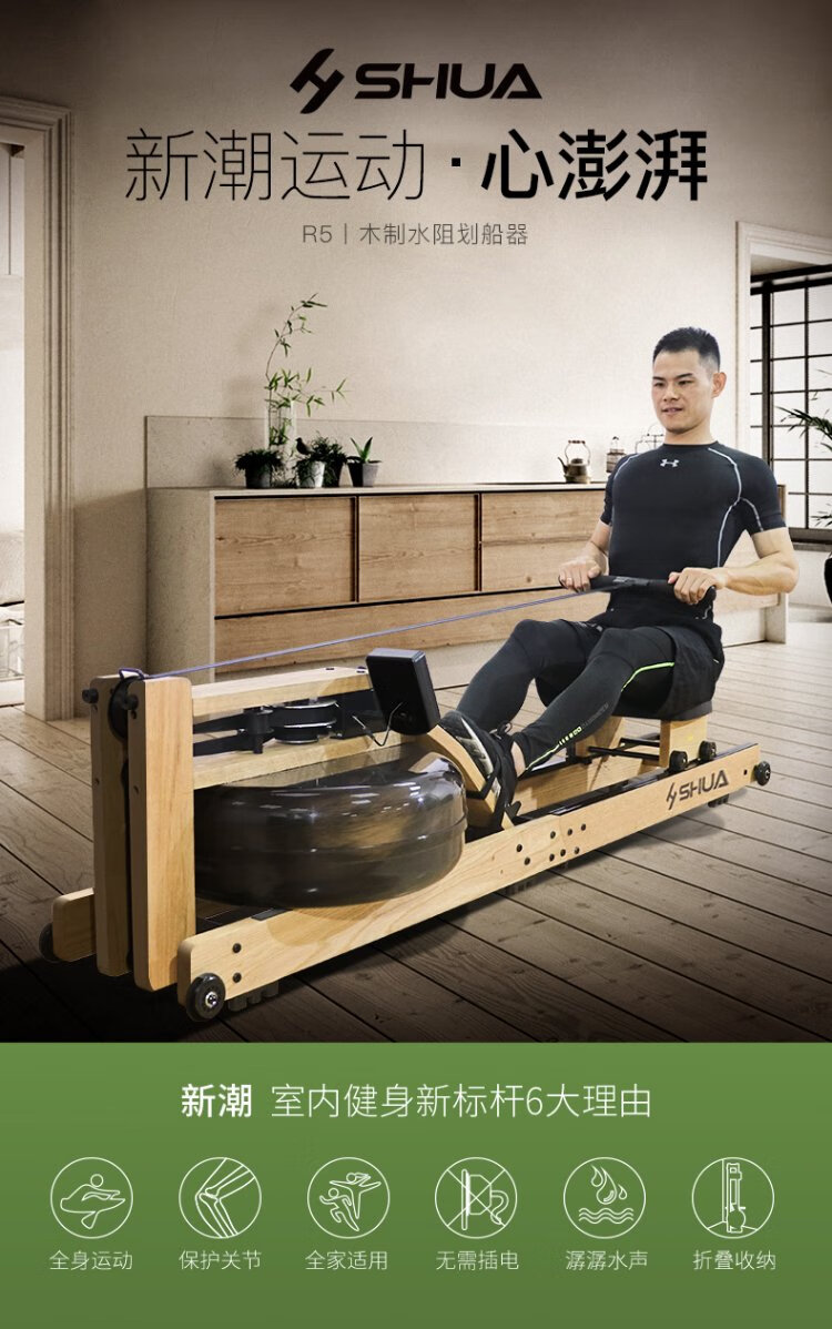 Shuhua (SHUA) water resistance rowing machine household indoor fitness equipment rowing machine imported log rowing machine SH-R5100