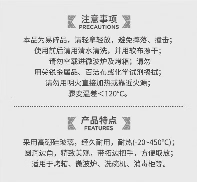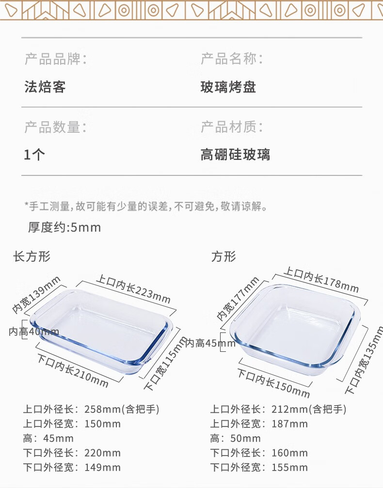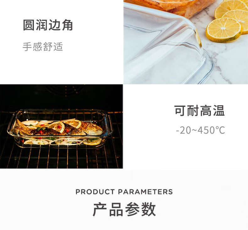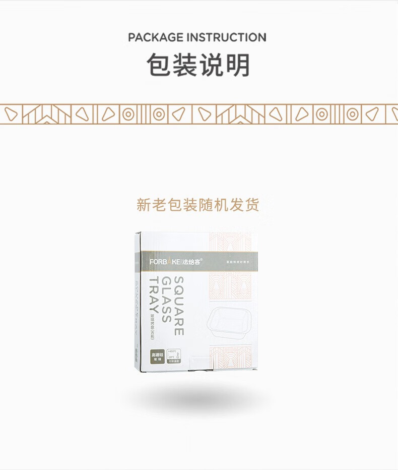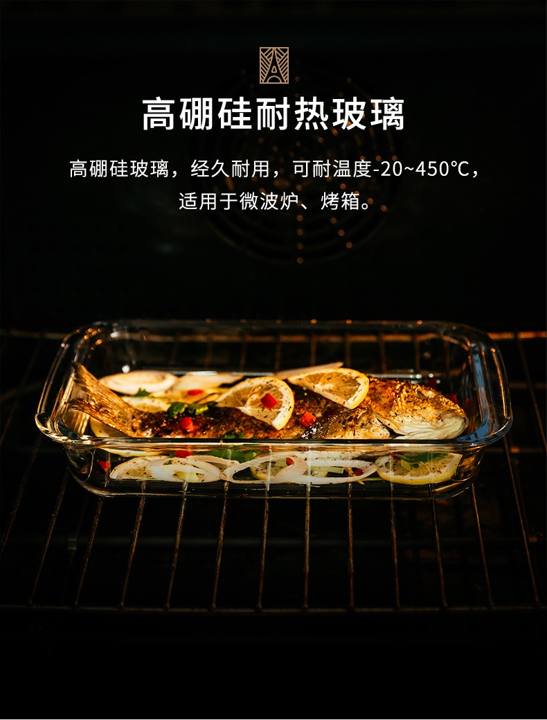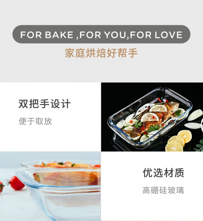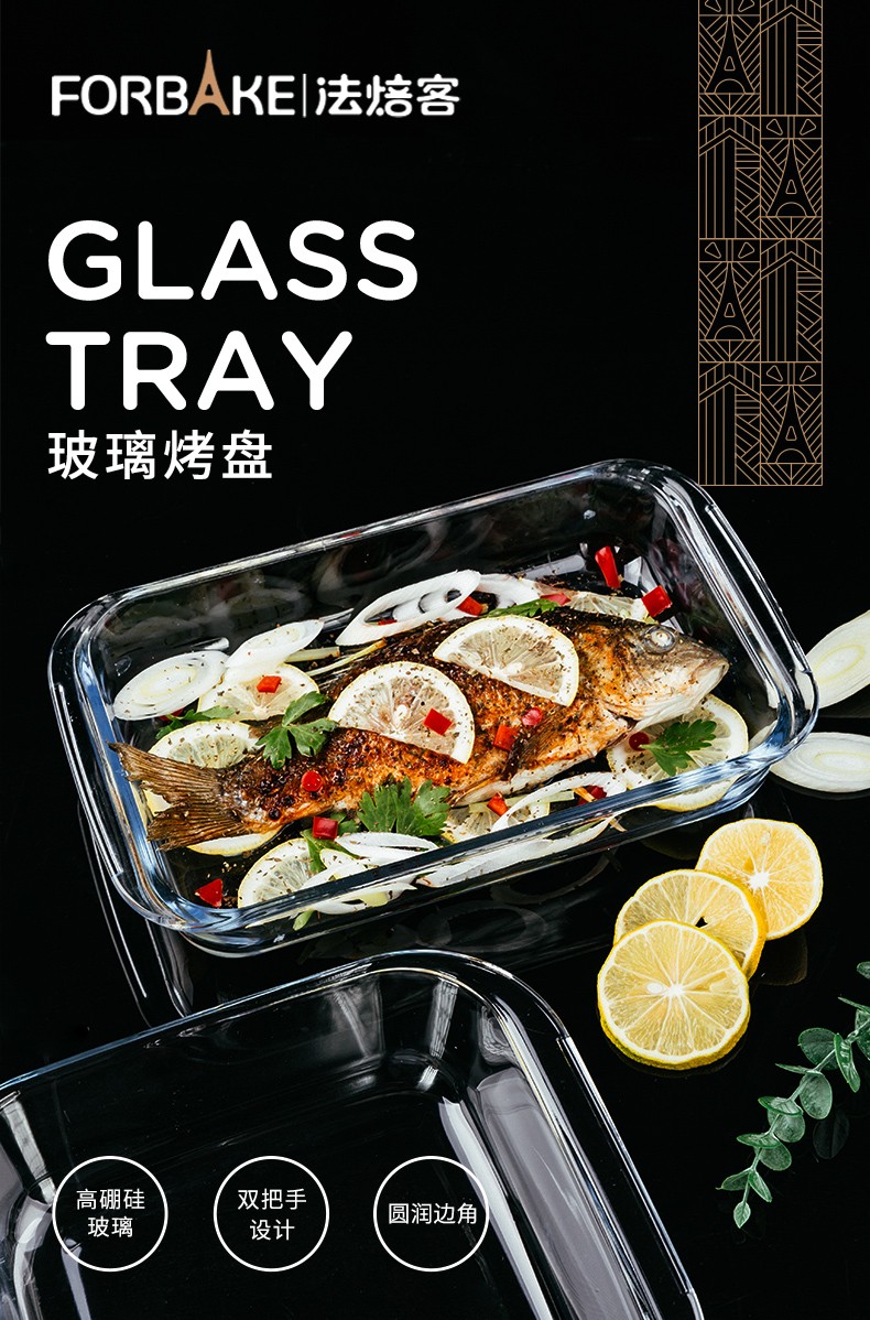 FOR BAKE glass baking pan, tempered glass baking pan, household heat-resistant fish plate, high borosilicate microwave oven, pizza rice pan, square/FB58022