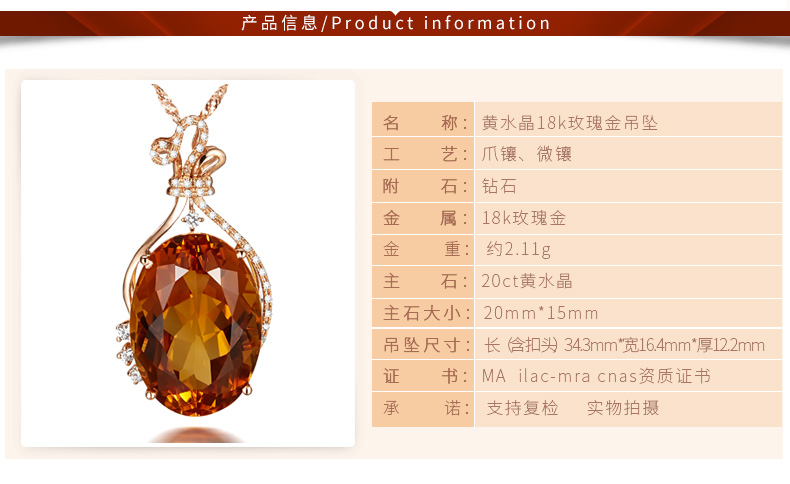 Ouchini colored gemstone customized 18k rose gold diamond necklace citrine citrine pendant for women 18K rose gold (customized in 5-7 days)