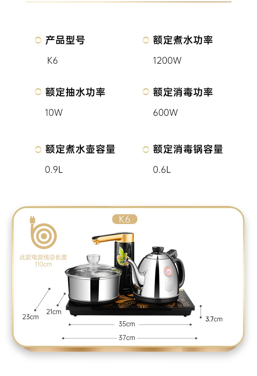KAMJOVE fully intelligent automatic water-filling electric kettle, electric tea stove, complete tea set with water, tea table kettle K6 (23*37cm) 900ml