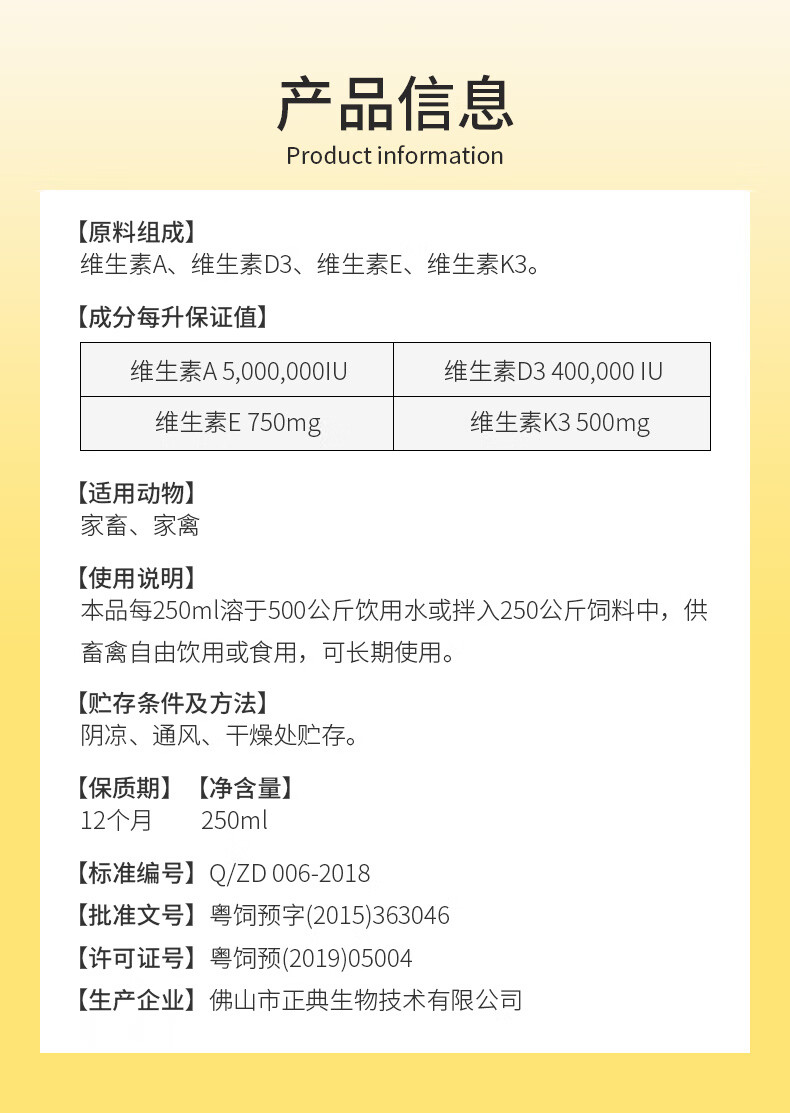 Canonical cod liver oil aqueous solution ADE oil liquid concentrated vitamin premix multidimensional pig chicken and duck nutritional supplement for veterinary use 250ml/bottle