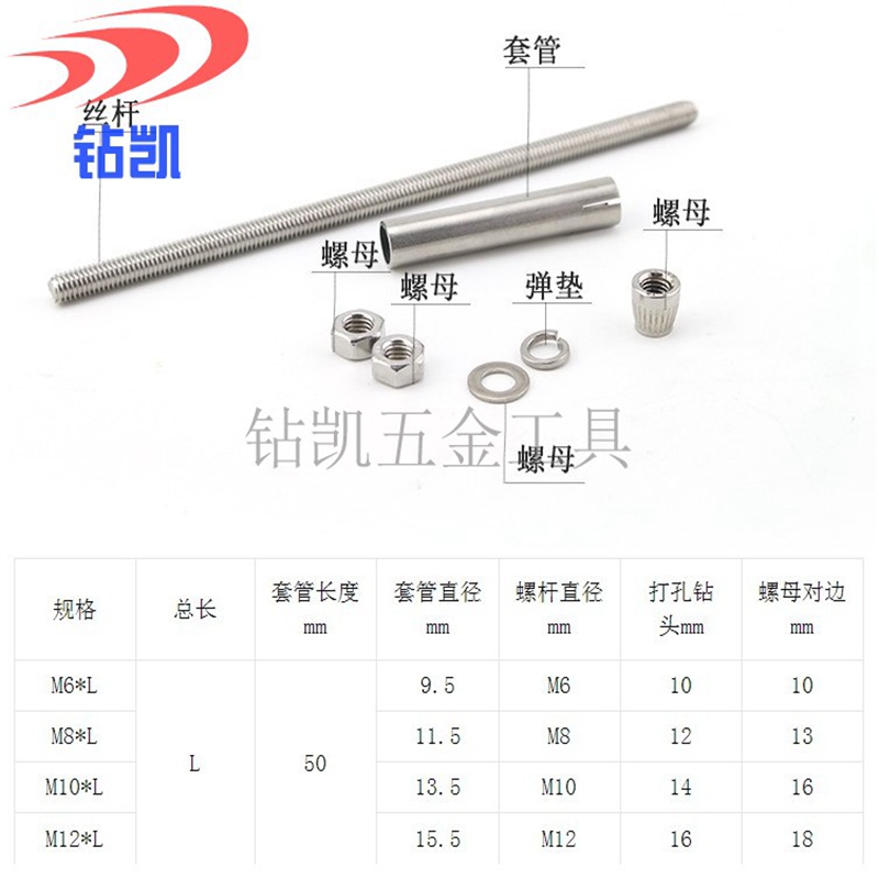 Zhuankai 304 stainless steel extended expansion screw extra long ceiling expansion bolt clothes hanger expansion M6M8M10M12 M10*200