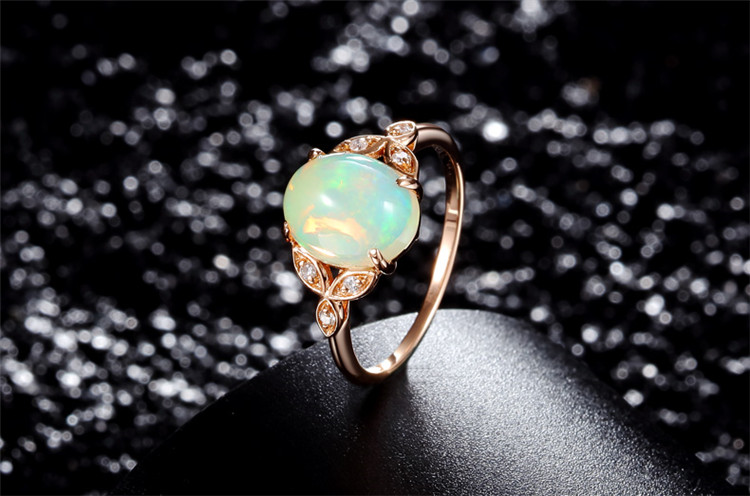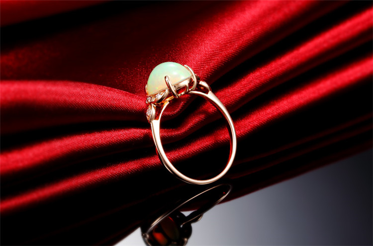 Ouchini Jewelry 2 carat Australian Opal Ring 18K Rose Gold Diamond Colored Gemstone Ring Ring 18K Rose Gold 15# Ready Stock