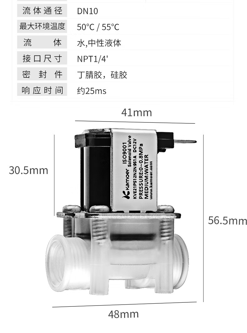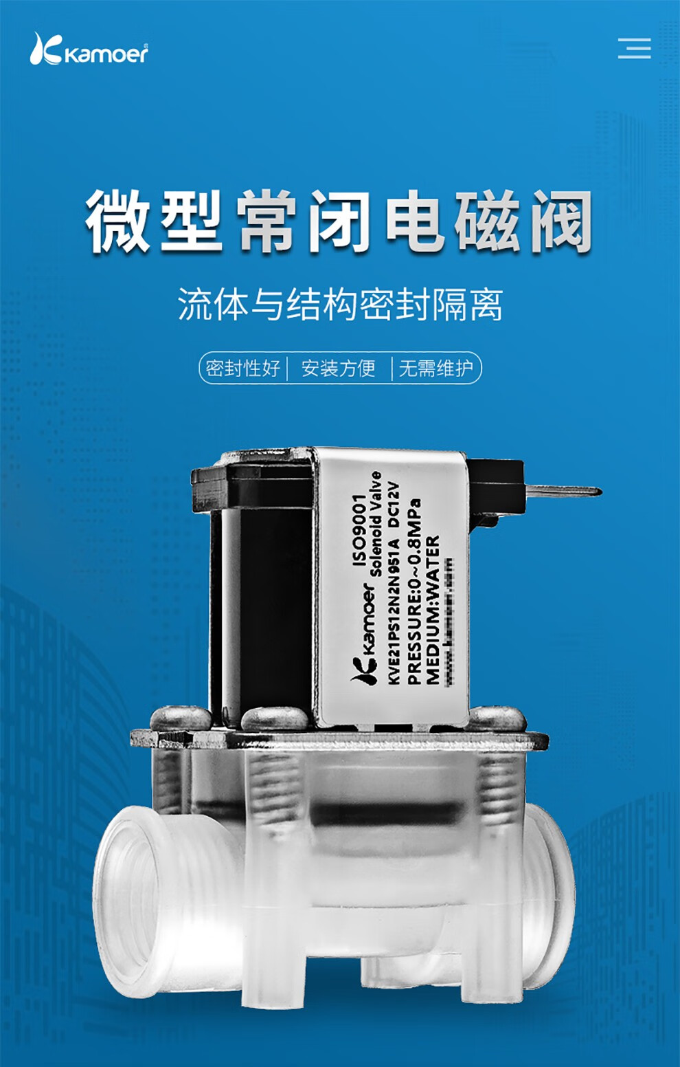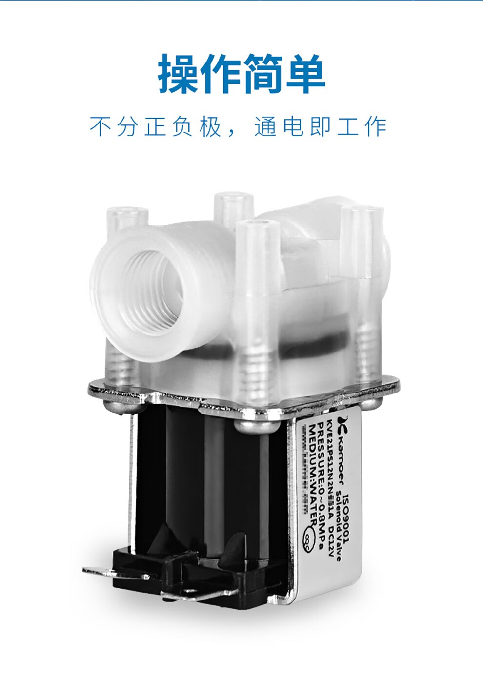 Kamoer solenoid valve miniature normally closed solenoid water valve air valve switch hydraulic directional valve DC24V direct-acting pneumatic component KVE21PS24N2N951A (normally closed 24V)