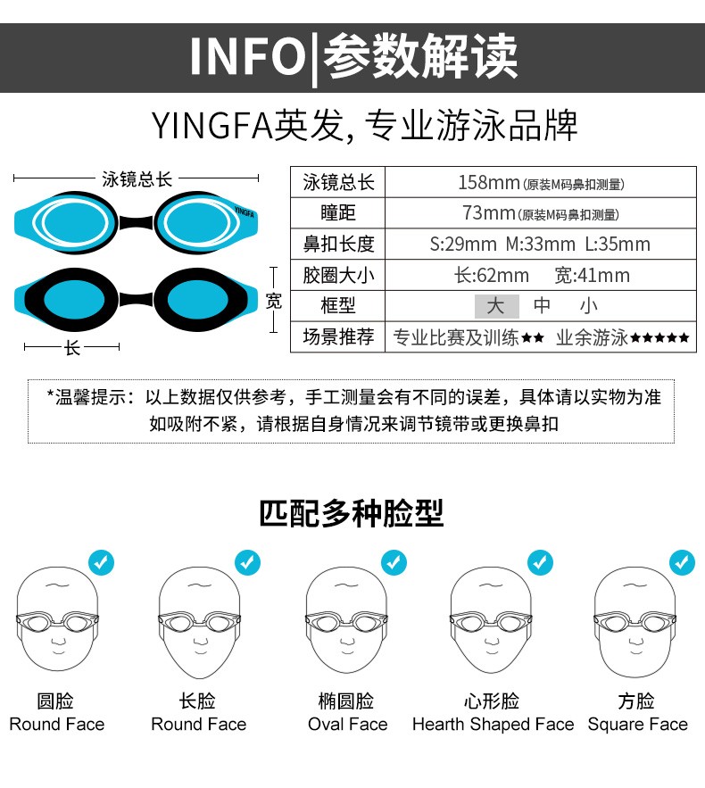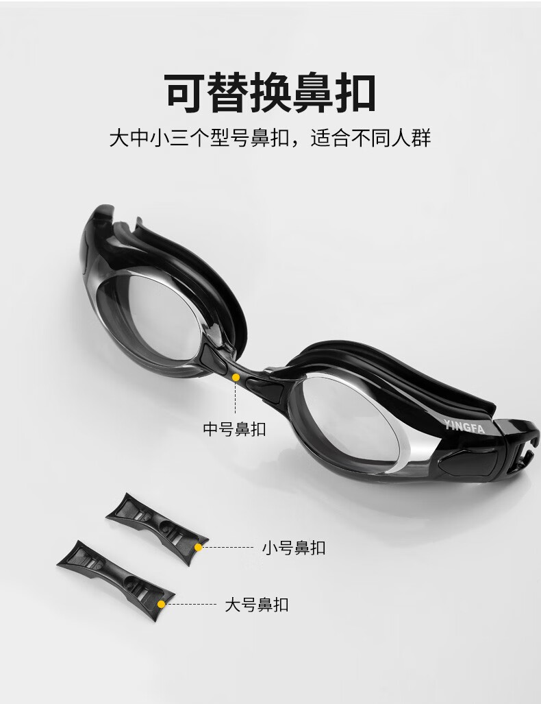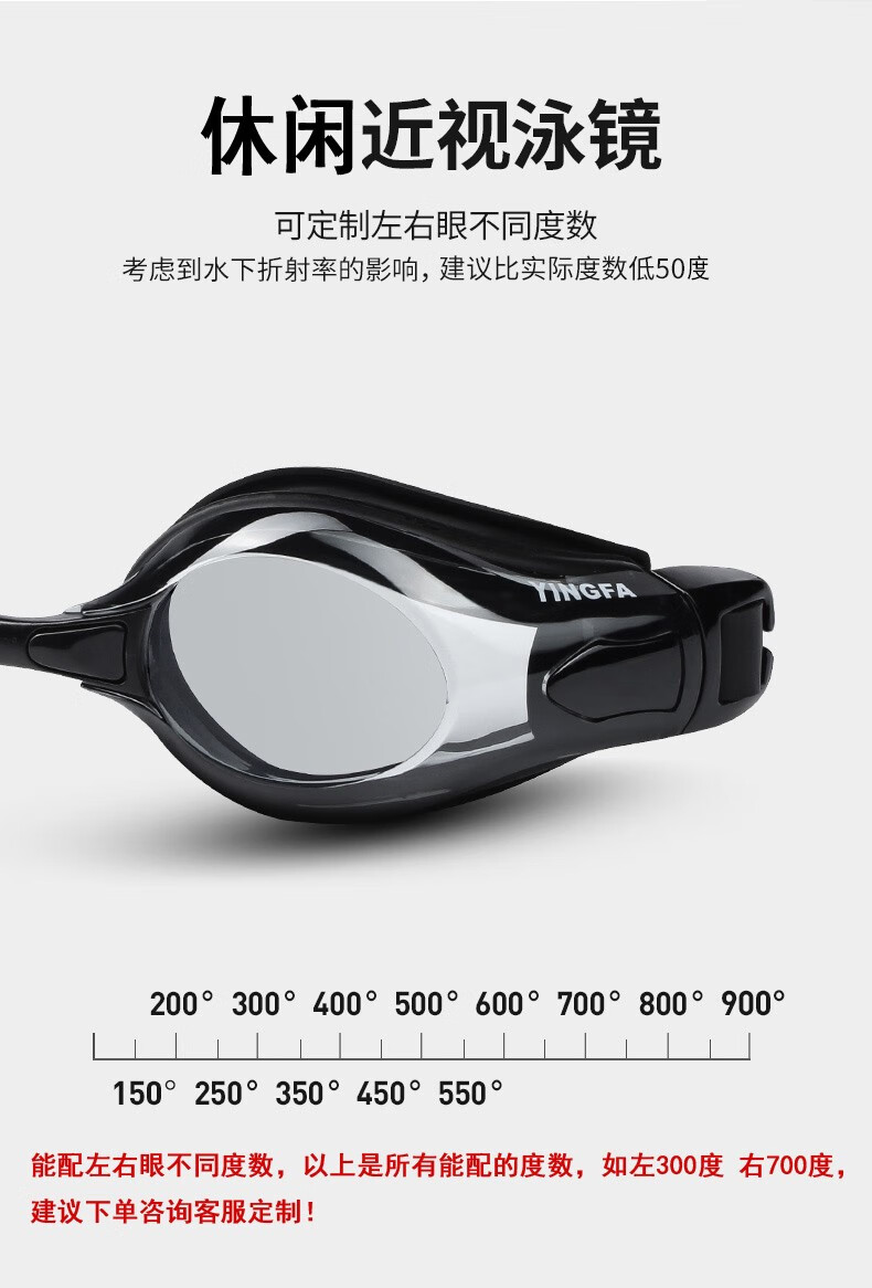 YINGFA myopia swimming goggles casual large frame anti-fog water glasses ok3800af can have different degrees for left and right eyes, black 300 degrees