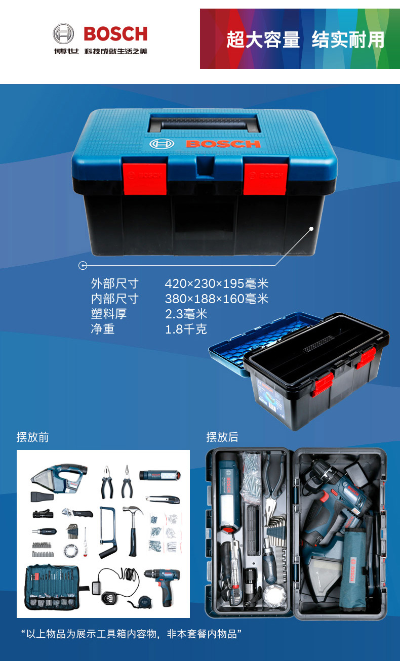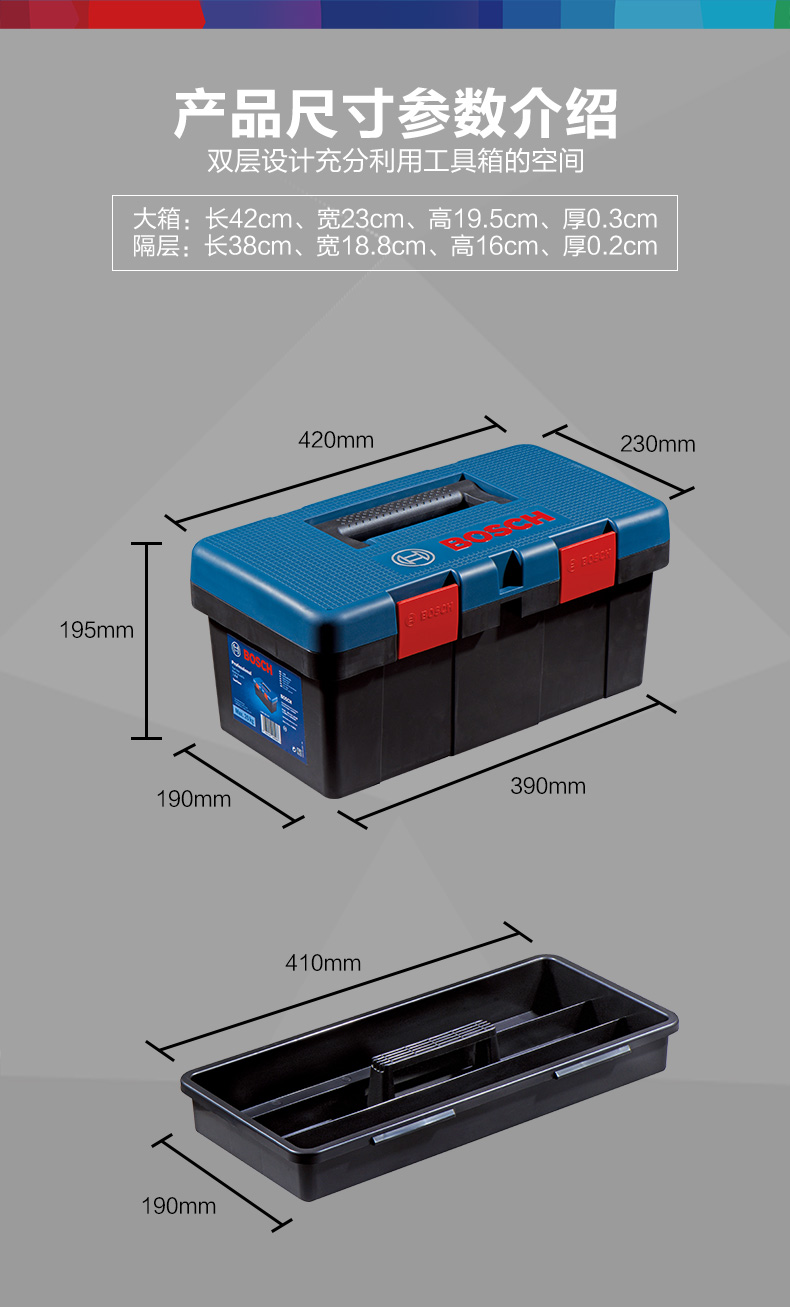 BOSCH Bosch tool box storage box portable double-layer hardware tool plastic multi-functional storage box electric drill/electric hammer/angle grinder tool box Bosch double-layer tool box (luxury type)