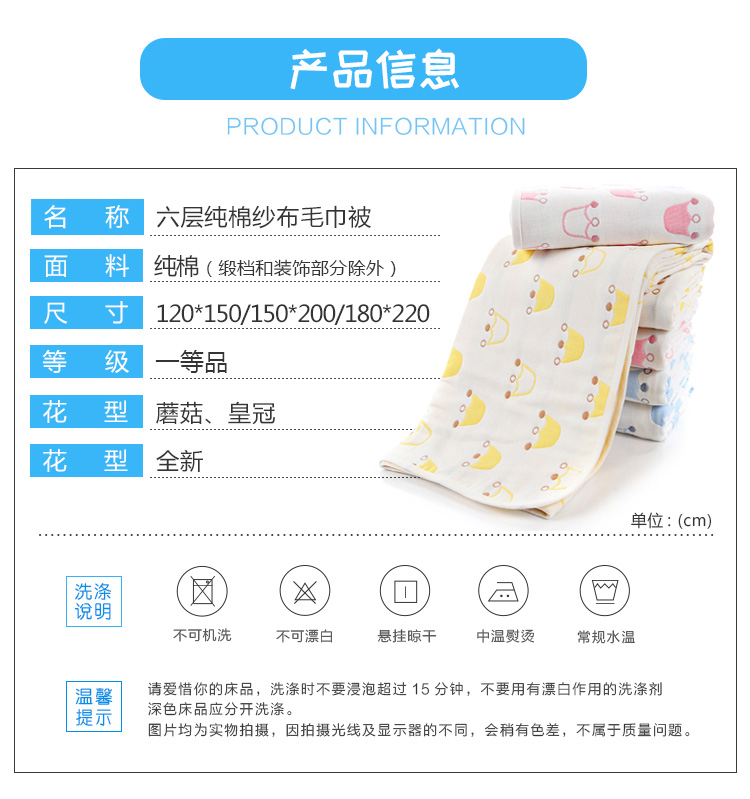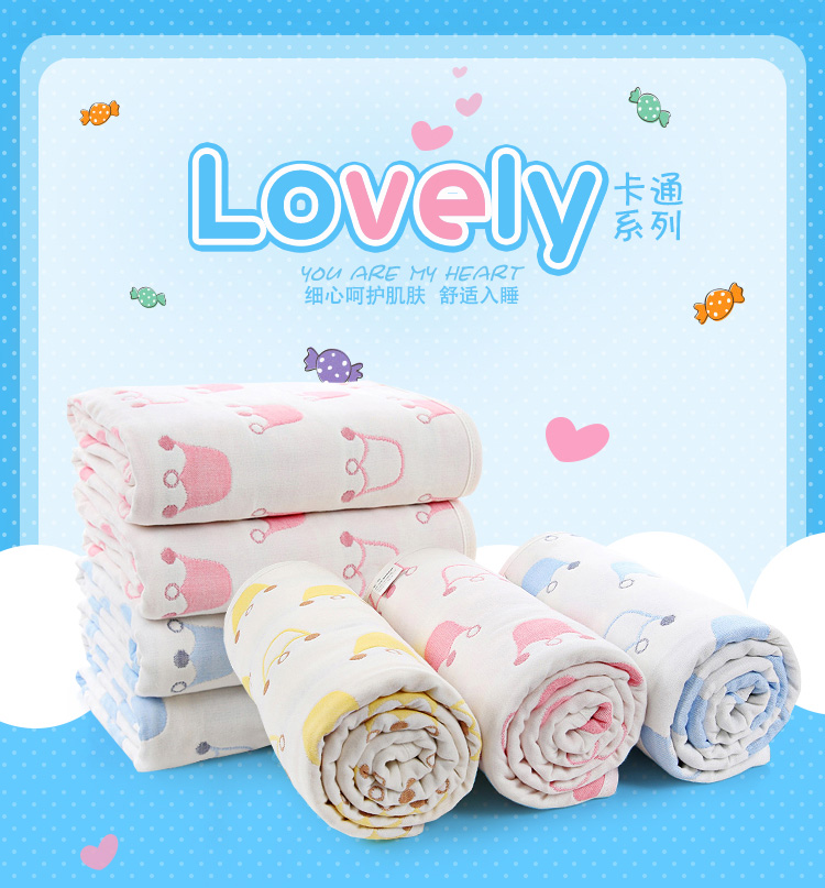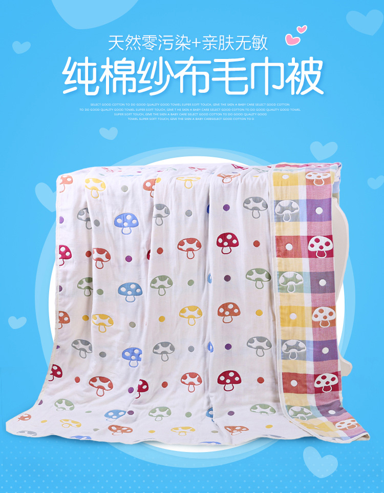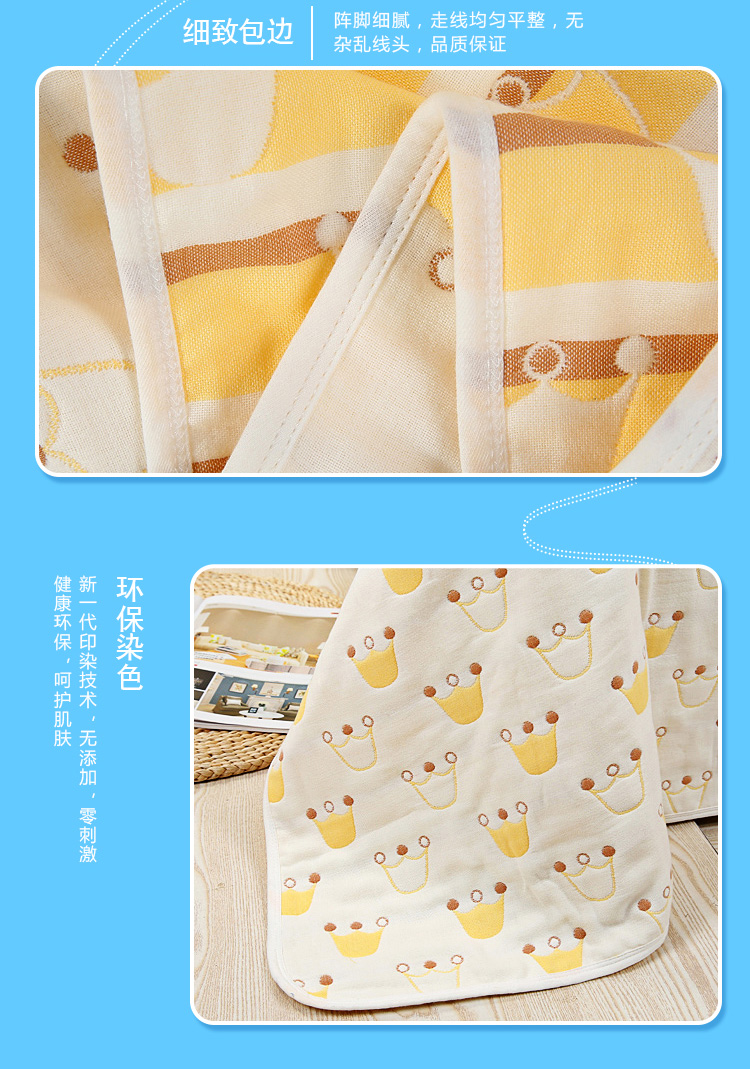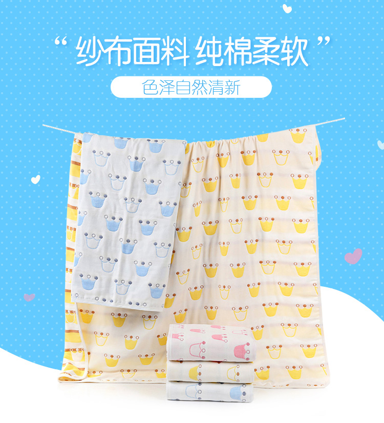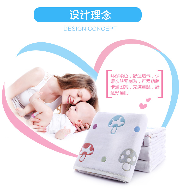 Mufan pure cotton 6-layer gauze towel quilt Class A cotton newborn baby baby blanket nap towel blanket cloud blue 110*110cm