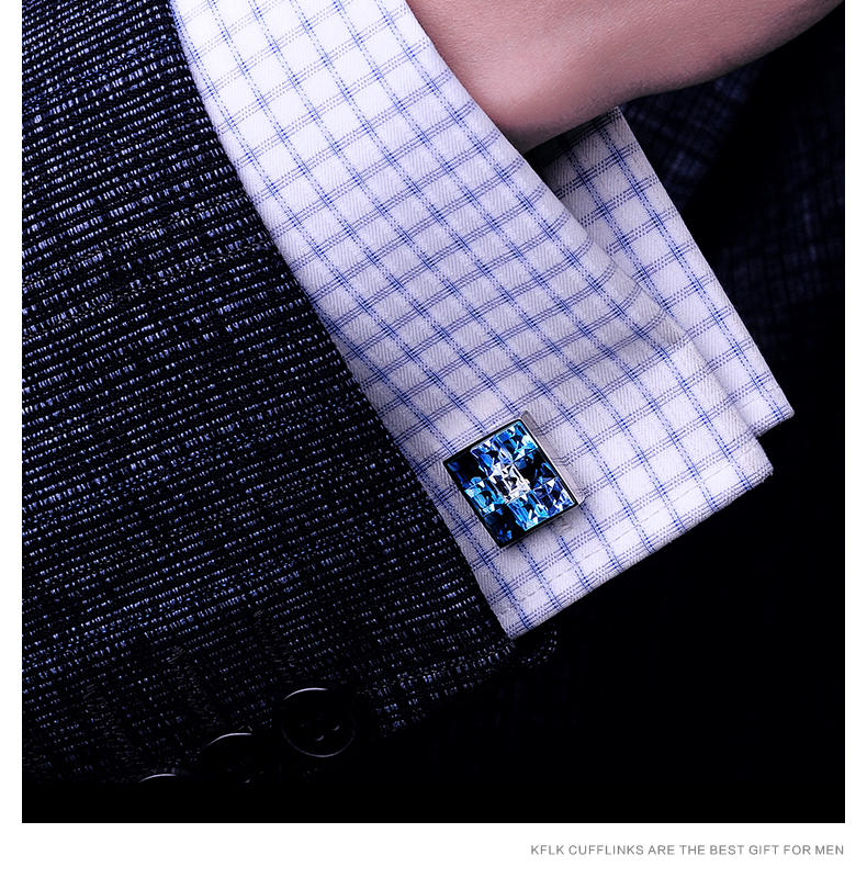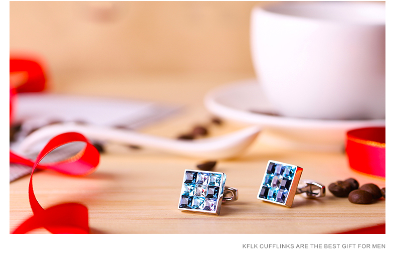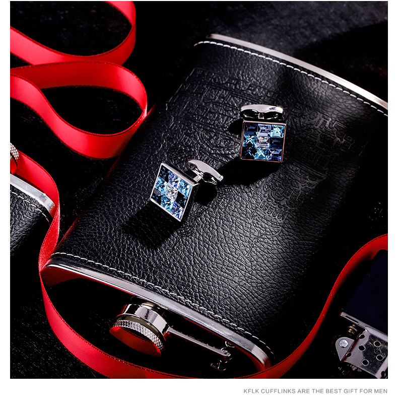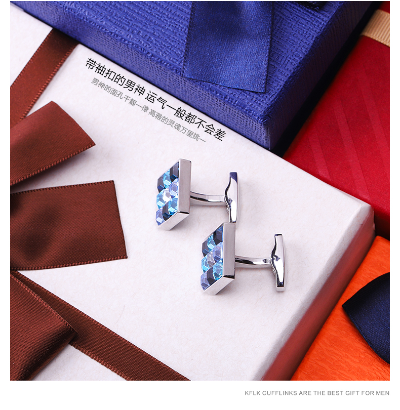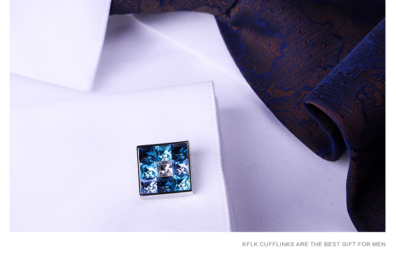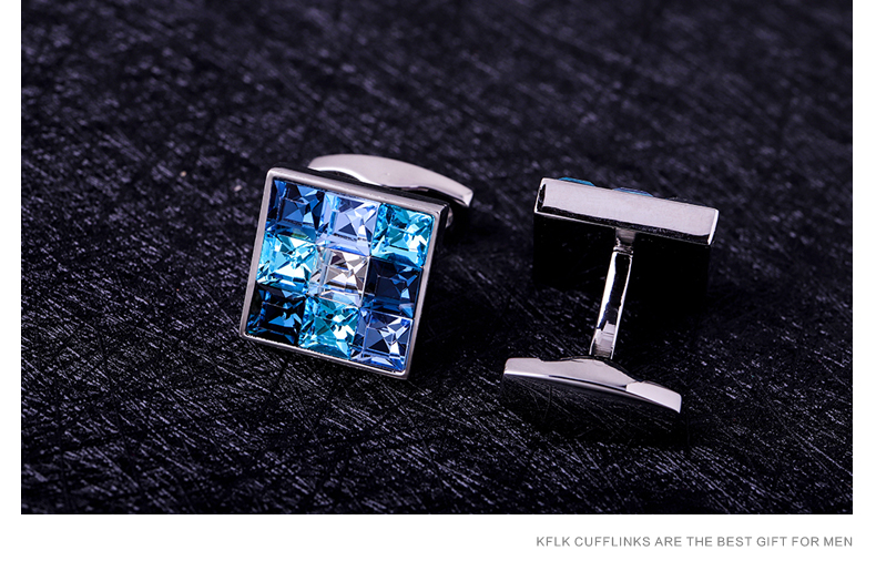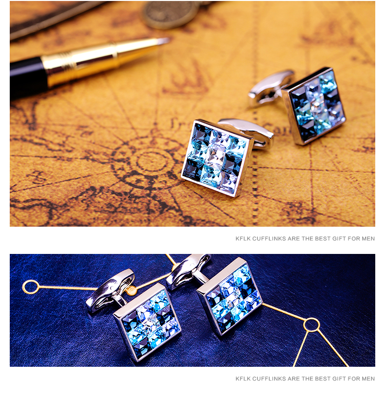 KFLK men's luxury crystal cufflinks, high-end shirt sleeves, business gifts, cuff buttons, custom engraving gift box, blue