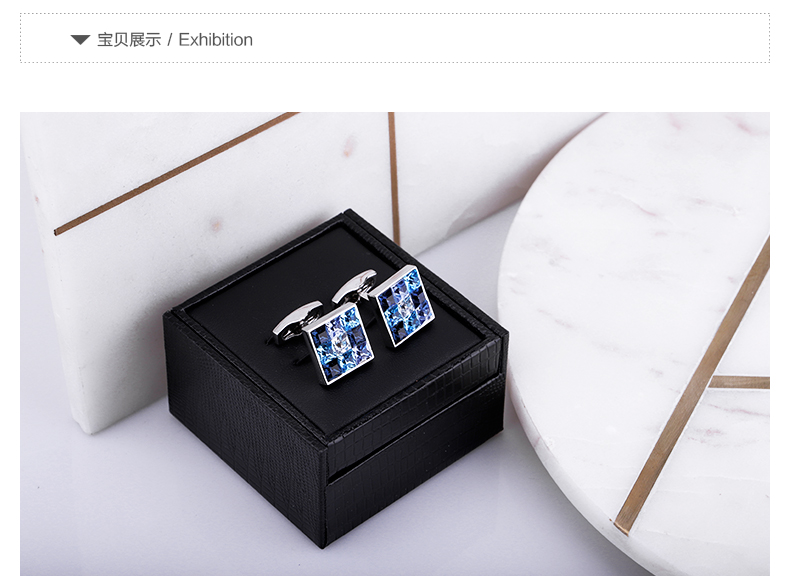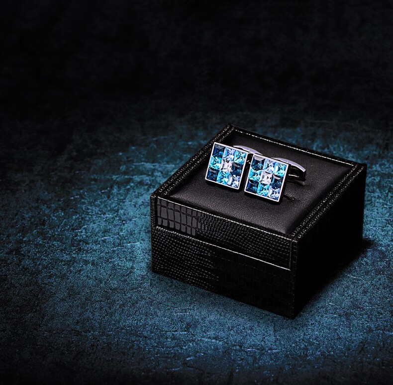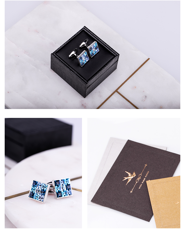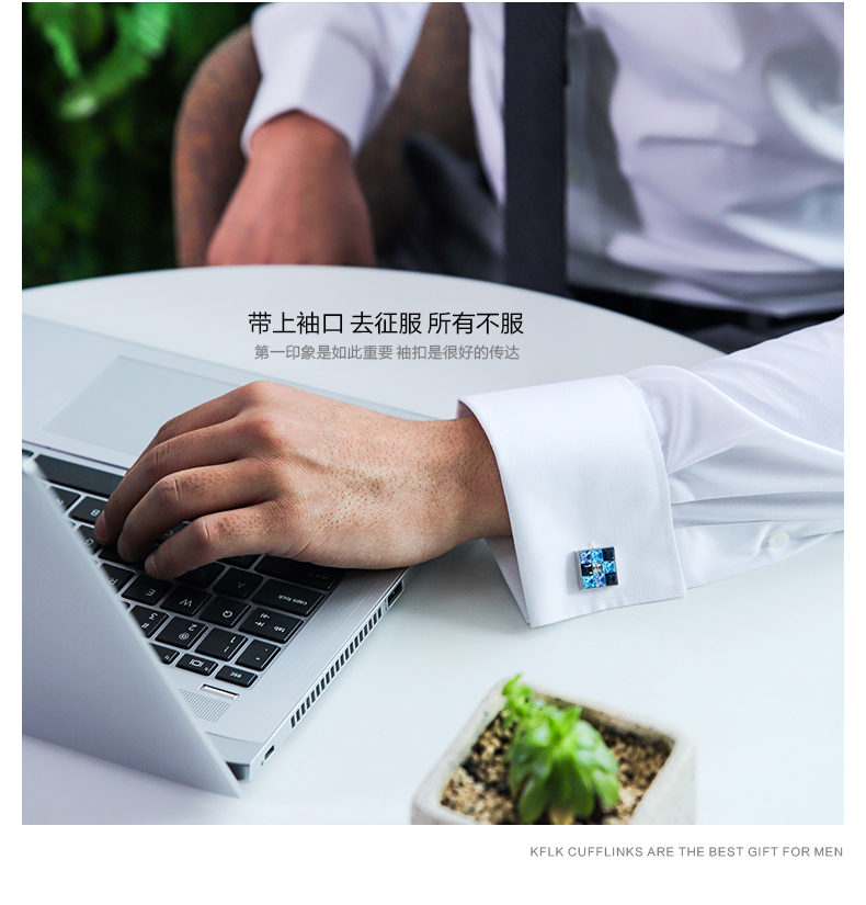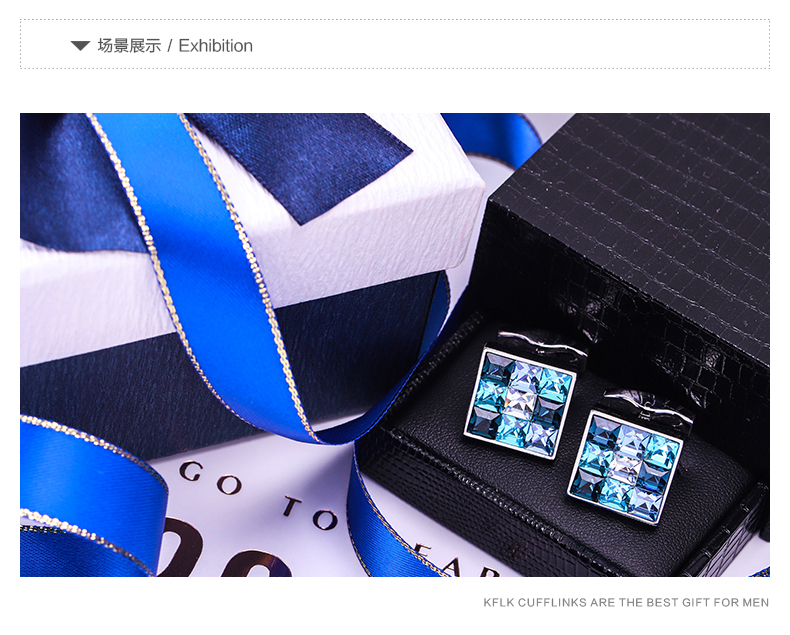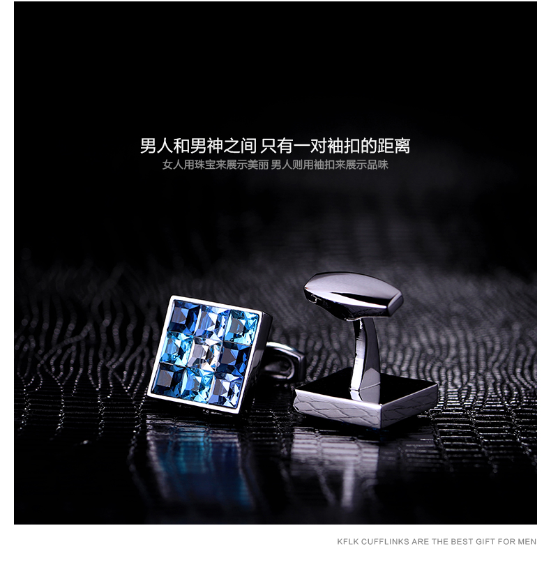 KFLK men's luxury crystal cufflinks, high-end shirt sleeves, business gifts, cuff buttons, custom engraving gift box, blue