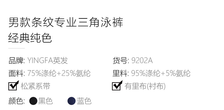 YINGFA Jungen Shorts, Racing Triangel Herren Badehose, Schwimmtrainingshose 9202A-1 Schwarz L (empfohlener Taillenumfang 68-73 cm)